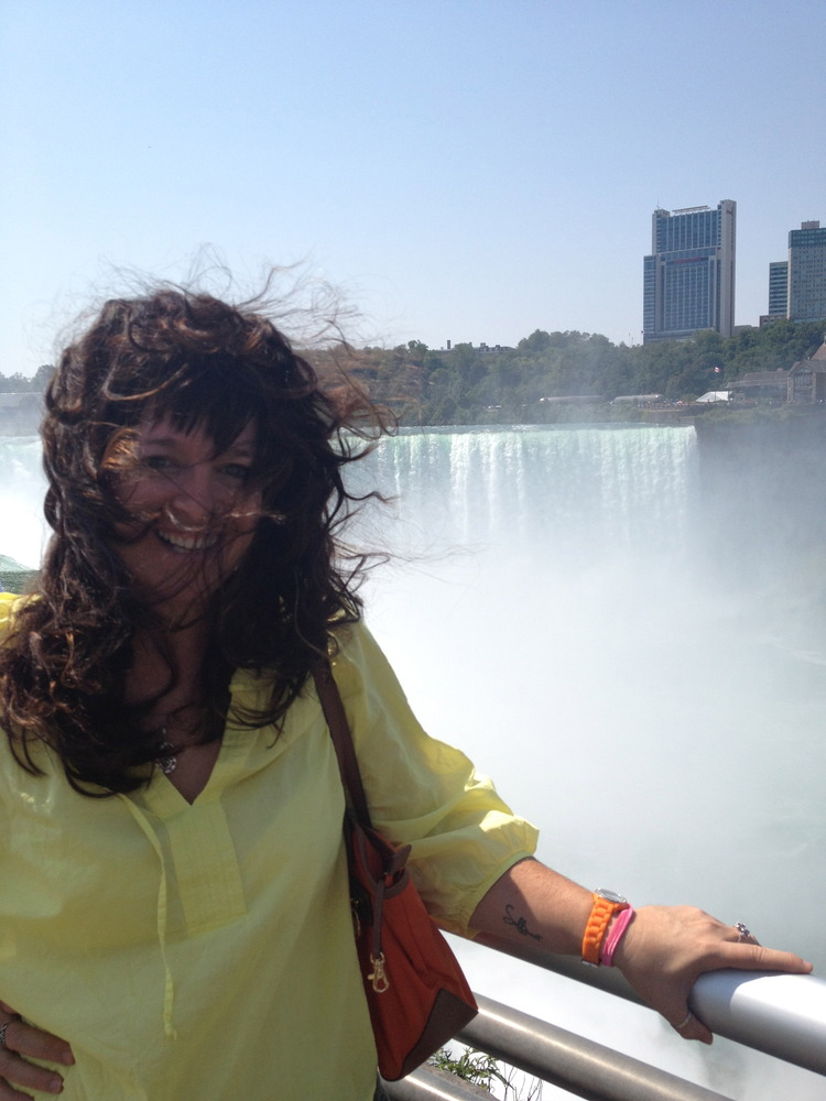 The boats went fairly close to the falls, but not all they way. Evelyn was not impressed.