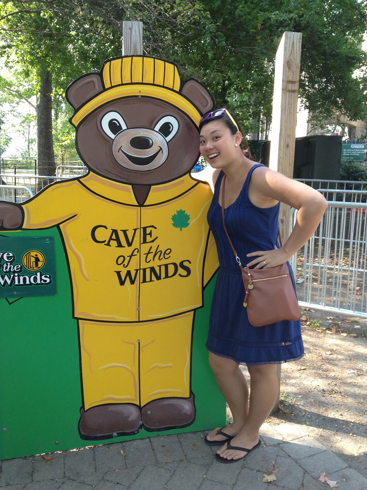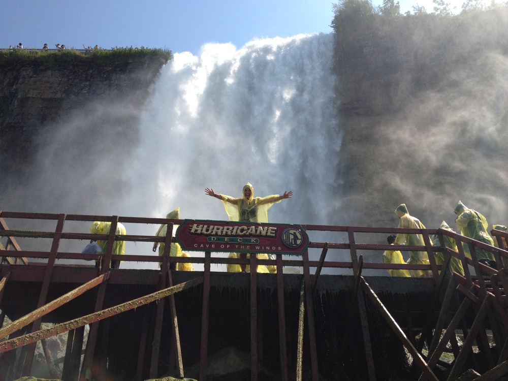 The interesting thing about the Cave of the Winds is that there isn’t a cave. It’s actually just a series of platforms that are VERY close to the American Falls. Evelyn even survived her time on the closest platform, Hurricane Ridge.