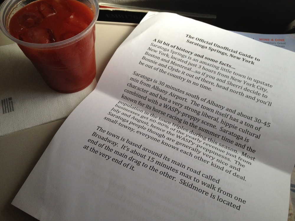 My friends (and co-workers) Sharlene and Ethan and I boarded an early flight from DCA to Albany. Thankfully, Sharlene’s roommate Sarah is a graduate of the local University (Skidmore) and thoughtfully prepared an Official Unofficial Guide to Saratoga Springs that helped us identify the venues we really needed to see between meetings!