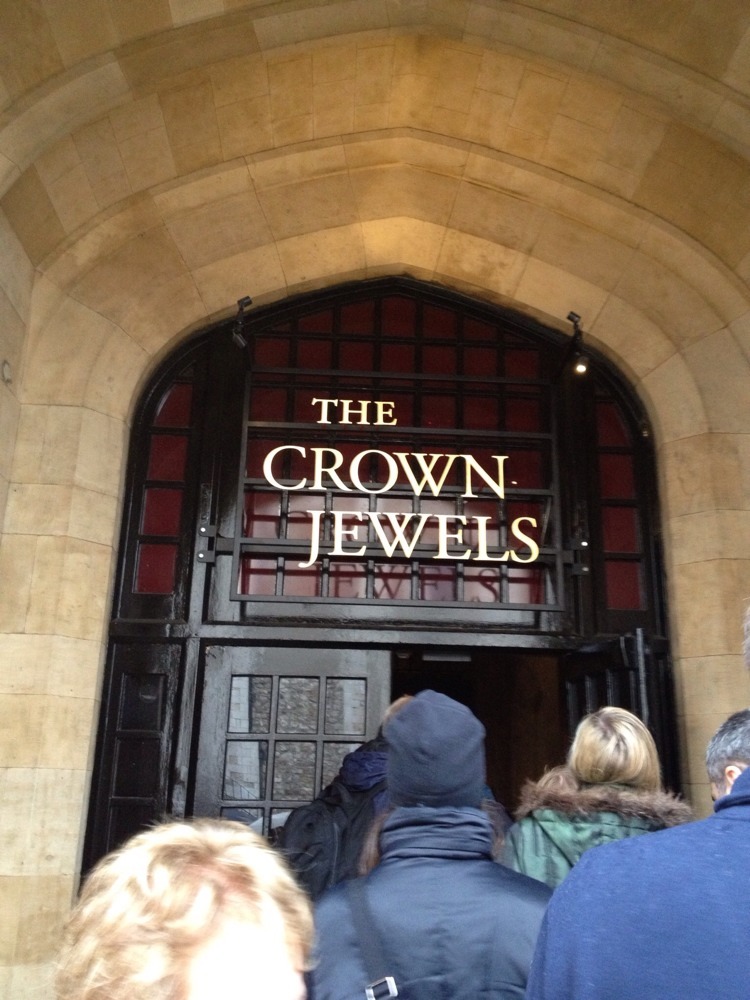 Upon arrival, we were ushered right in and made it just in time to take a tour led by one of Her Majesty’s Beefeaters. He gave a delightful talk about the bloody history of the Tower. We also learned how Beefeaters got their name. Well, we learned they don’t know how they got their name and we should never ever ask them! He pointed out some interesting sights like the Queen’s Apartments, where Henry’s queens lived before they were executed. He told us that when they were trying to repair the floor during Victoria’s reign, they uncovered 1,500 bodies, most of which we unaccounted for. A few were identified, like Henry the Eighth’s sister, who tried to run from the executioner and was chased down and hacked to bits with his ax. Apparently she was easy to pick out. Afterwards we toured the crown jewels. This was my favorite exhibit, though I was disappointed that the only ones on display were from more recent years. Don’t get me wrong, there are no bad crowns! But I’d hoped to see some of Elizabeth the Firsts pearls and such, so that was kind of a let down.