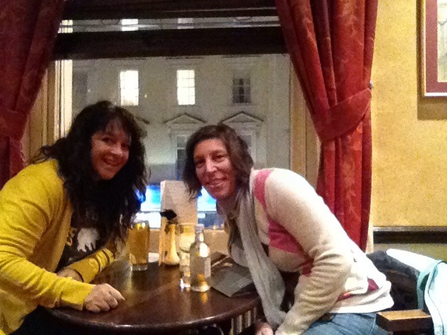 My palatial suite was ready, but we decided to find a pub and grab a pint with dinner. The staff sent us to The White Swan. The place was hopping! Terribly busy with lots of adorable Christmas scenes painted on the window. Unfortunately, there was also a sign on the door that said that “due to unforeseen” circumstances they were not serving any food tonight of any sort. Jenni and I are nothing if not resourceful, so we continued on the road until we did find a pub.