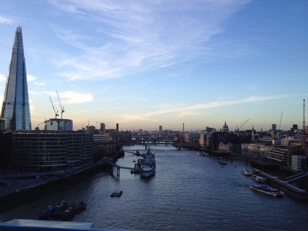 The Tower Bridge is the fanciest bridge in London. It was designed in 1894. We climbed to the top of the north tower and then strolled around taking photos, you can see nearly the entire city! Afterwards we descended to the steam room to look at the giant steam engines that powered the bridge. Although this part was slightly less interesting to me, the machines were shiny! It was too late in the day to see the Tower of London, so we boarded the boat to go back up the river. This was an excellent decision, since it was growing dark and the entire city was lit up as we passed. We got off in Westminster, took the stairs to the street, and arrive at the foot of Big Ben as the clock struck five.