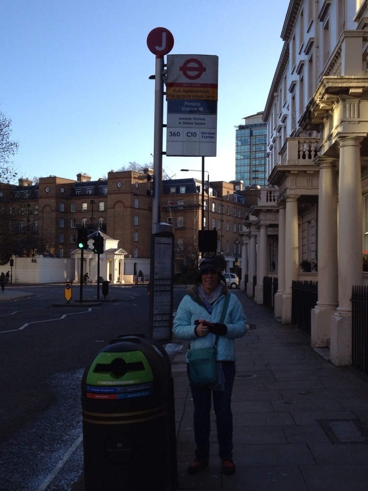 The instructions to journey to the Hilton Terminal 5 seemed fairly simple, and given our dominance of the public transportation system here, we headed out with full confidence. We didn’t have any problem catching the first train on the underground, or transferring to the second. We even found the right bus stop and boarded the right bus. Thankfully the bus driver was super helpful, cause he had to tell us which stop to get off on and that we had to “walk around the corner and up a ways” to find the Hilton. That turned into a thirty minute walk over some very rough and muddy sidewalks, dragging our overstuffed bags through a very dark street!