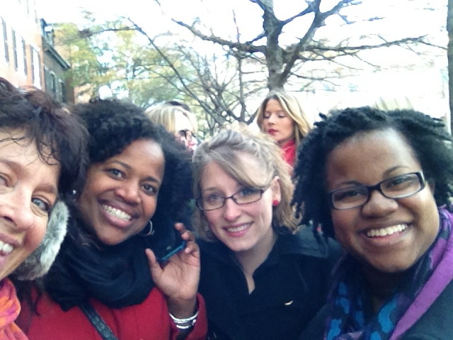 Our friend Dawn arrived. And by arrived I mean Pinkus talked her through finding us within the crowd of 20,000 in spite of the fact that the line was moving so quickly at the end, we were sprinting to keep up.