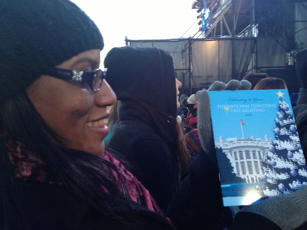 This week, my very very good friend Sharlene’s sister’s friend Kimmy won tickets to the standing room only section of the National Christmas Tree Lighting Lottery. Four of them! And she invited Sharlene, Pinkus and I to join her (Thanks Kimmy! You are a rock star!)