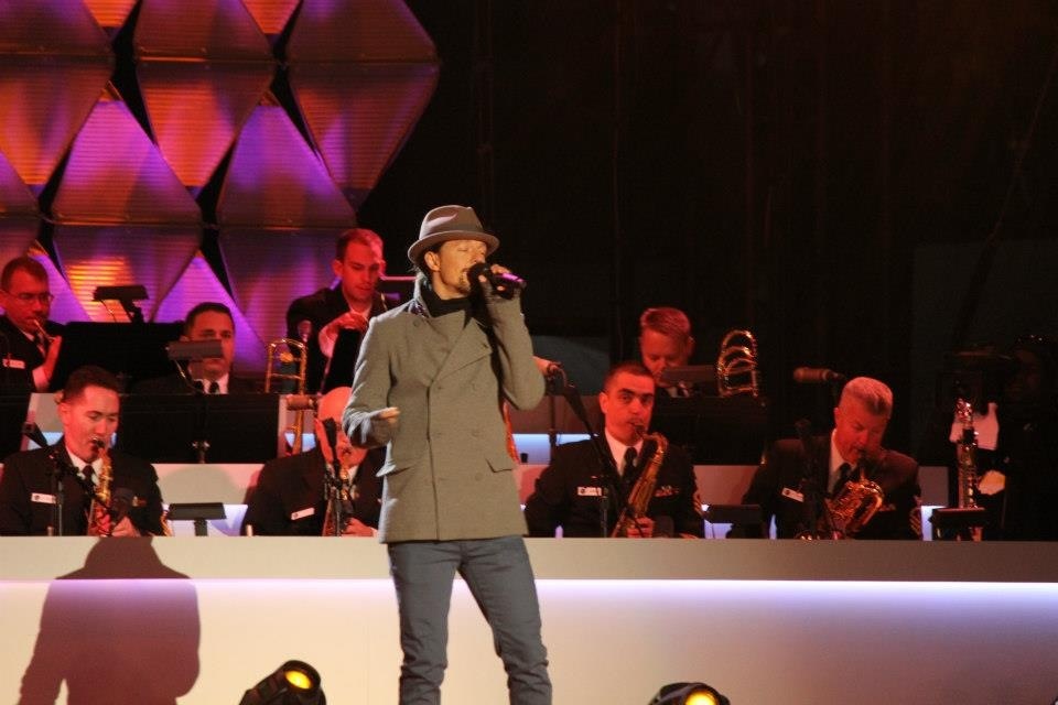 That’s when I discovered that the entire warm up act was the navy jazz band. And I think we all know how I feel about jazz! Sharlene and Dawn tried to distract me by skatting crazy christmas lyrics, and then Sharlene busted out the Triscuts and M&Ms she packed for us, which although they looked dusty, were the pretzel variety and totally delicious.