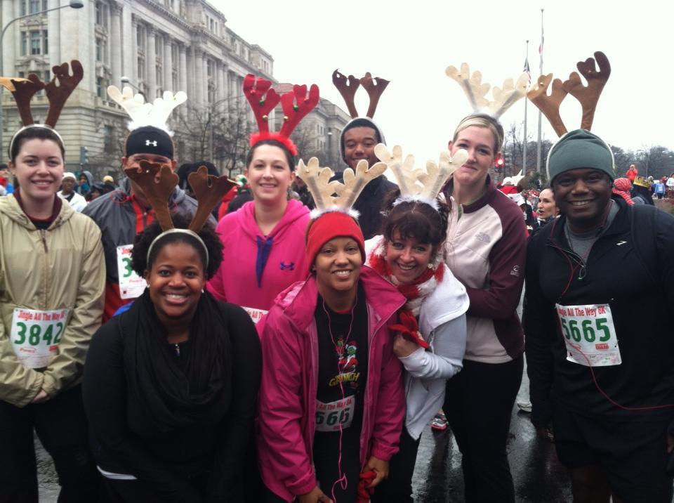 I hopped on the Metro and rode to Federal Triangle. The finish line was right there, and I like to think I crossed it first. Then I headed over to Au Bon Pain, which was the designated meet up spot for most of our team of reindeer.