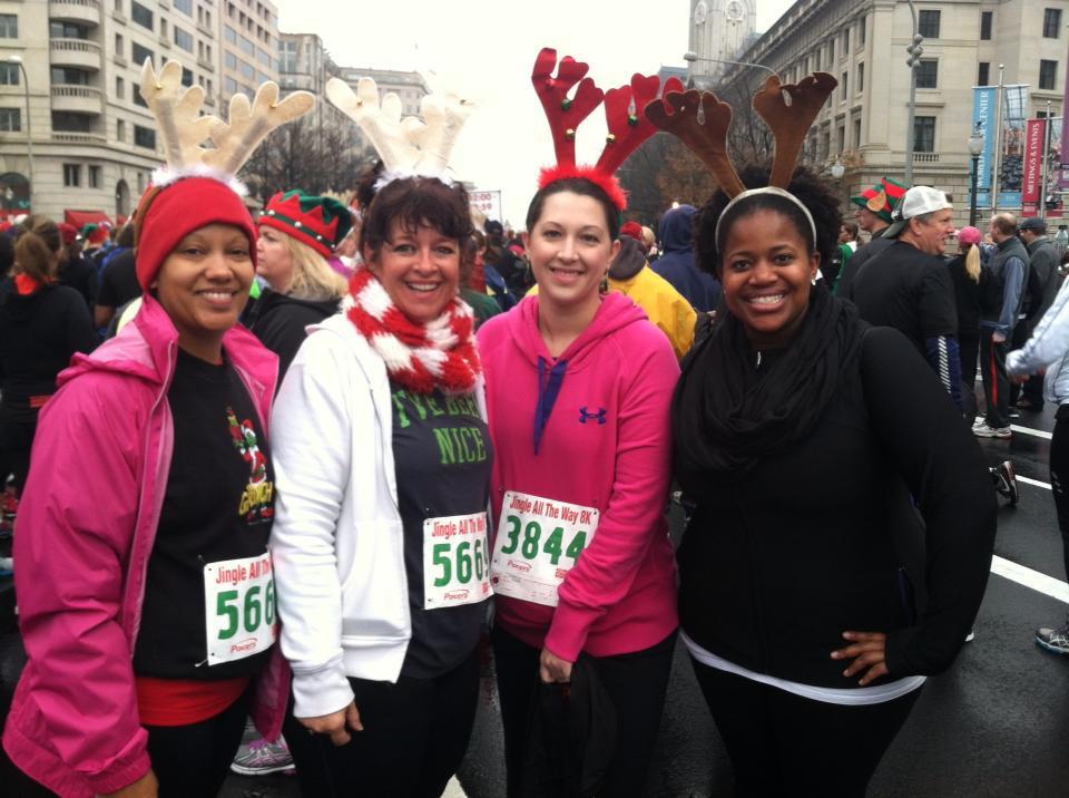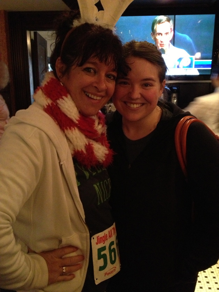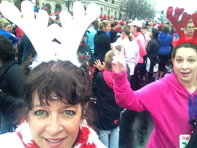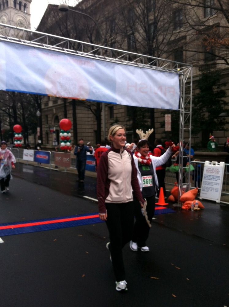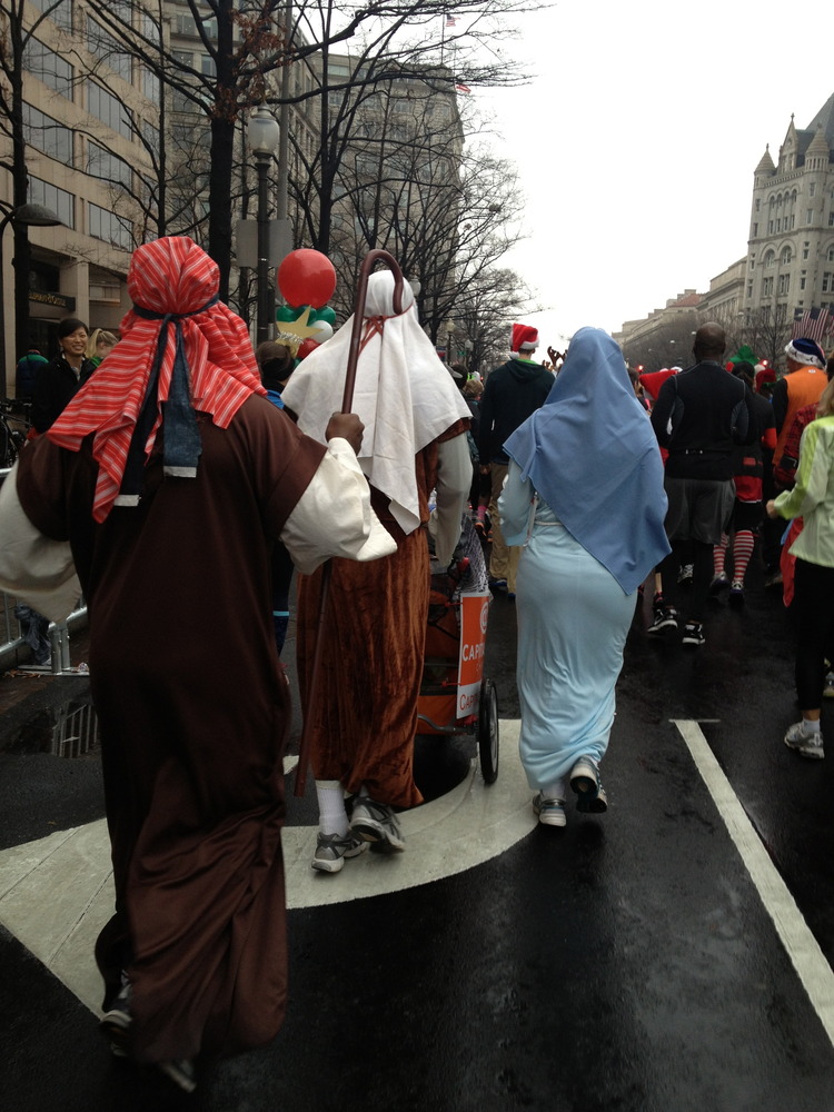 As soon as the race started we were lapped by Jesus, Mary, and Joseph. Some of my other favories were the Santa that juggled, a man in his Christmas jammies (complete with very large reindeer slippers), the North Star, elves, reindeer, and bunnies (if you’ve seen A Christmas Story, that totally makes sense).