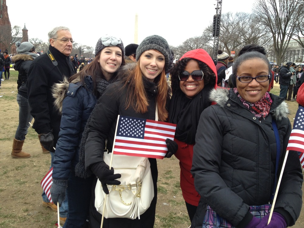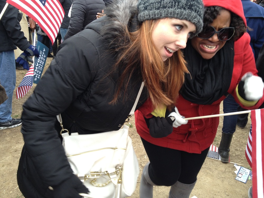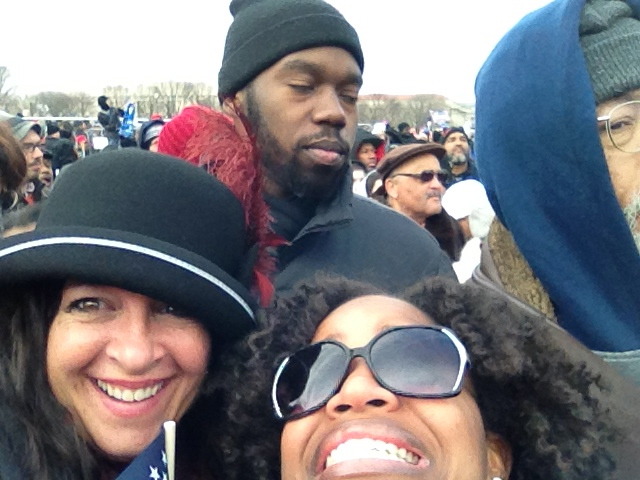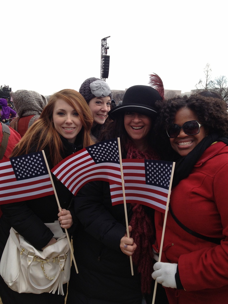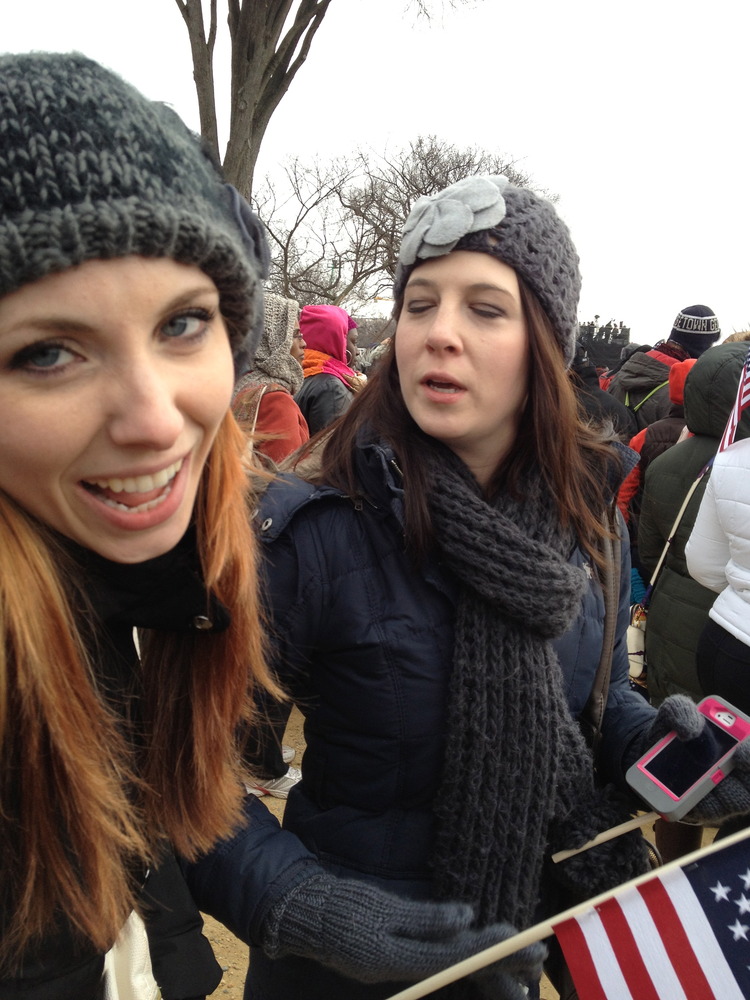 Erin, Abby and I put on our cutest hats and set out to meet Dawn and Sharlene to celebrate the second inauguration of Barack Obama. Our plan to drive to the city quickly got derailed by a massive number of street closings and pedestrians. We turned around and parked at the airport so we could hop on the metro instead.