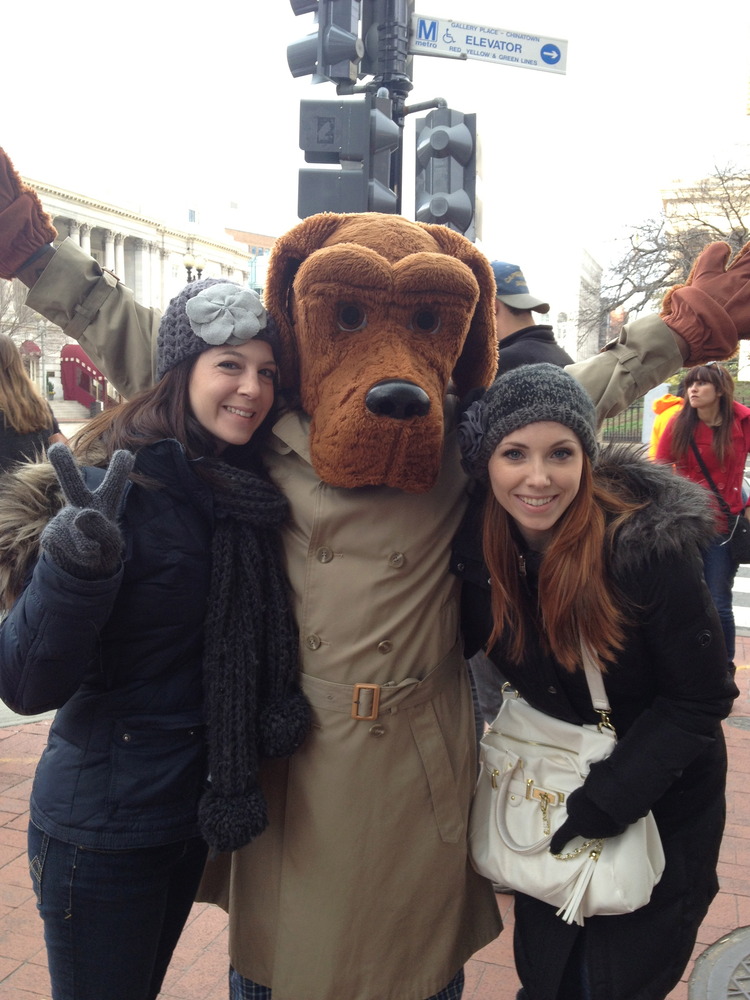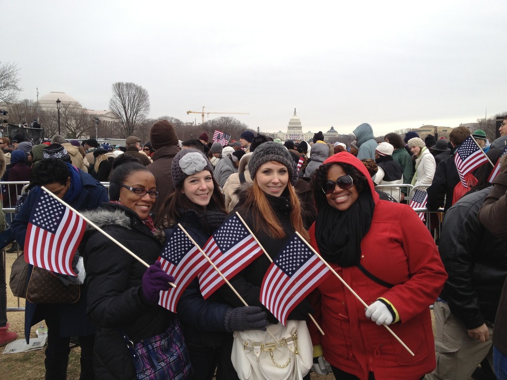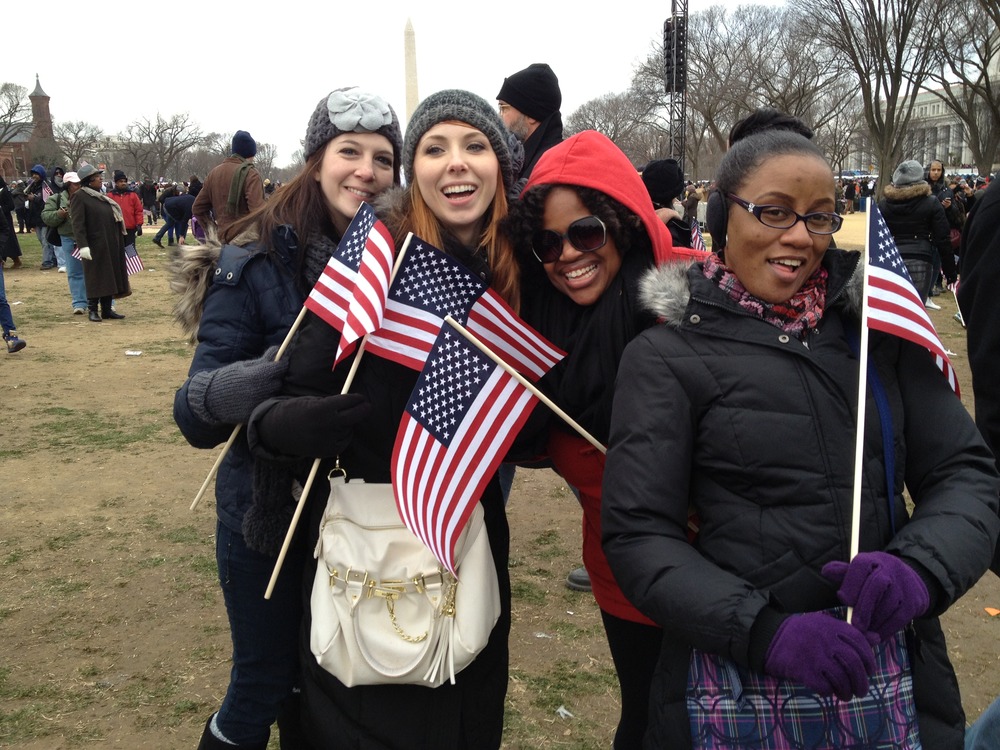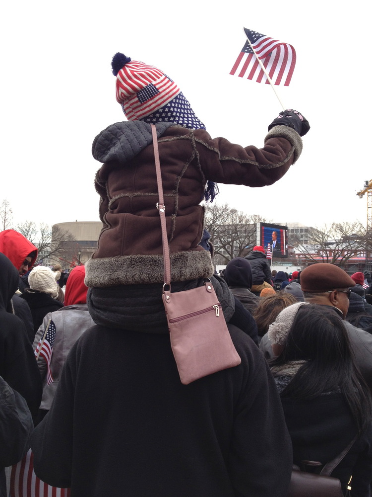 Erin, Abby and I put on our cutest hats and set out to meet Dawn and Sharlene to celebrate the second inauguration of Barack Obama. Our plan to drive to the city quickly got derailed by a massive number of street closings and pedestrians. We turned around and parked at the airport so we could hop on the metro instead.