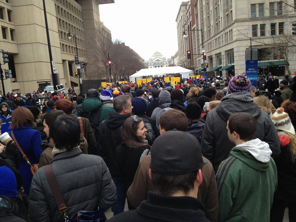 We stopped on the way to take a peek at the back of Anderson Cooper’s head and then made it to the human funnel that was several hundred thousand people trying to exit from a single three foot wide gate.