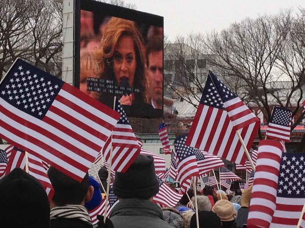 There was some blonde country singer who sang a patriotic song I can’t remember and then a poem by Richard Blanco.