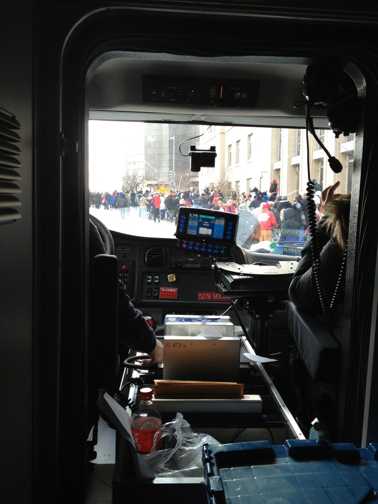 Our intent was to get out of the Mall and meet up with Ethan for a late lunch at Nellies. Sadly, we were a bit like salmon trying to swim upstream. After shuffling along with the masses we decided most people were heading towards the parade and we might be better off trying to board at L’Enfant Plaza. Sadly, they had us penned in like cattle being herded to the slaughter. Normal 0 false false false EN-US JA X-NONE