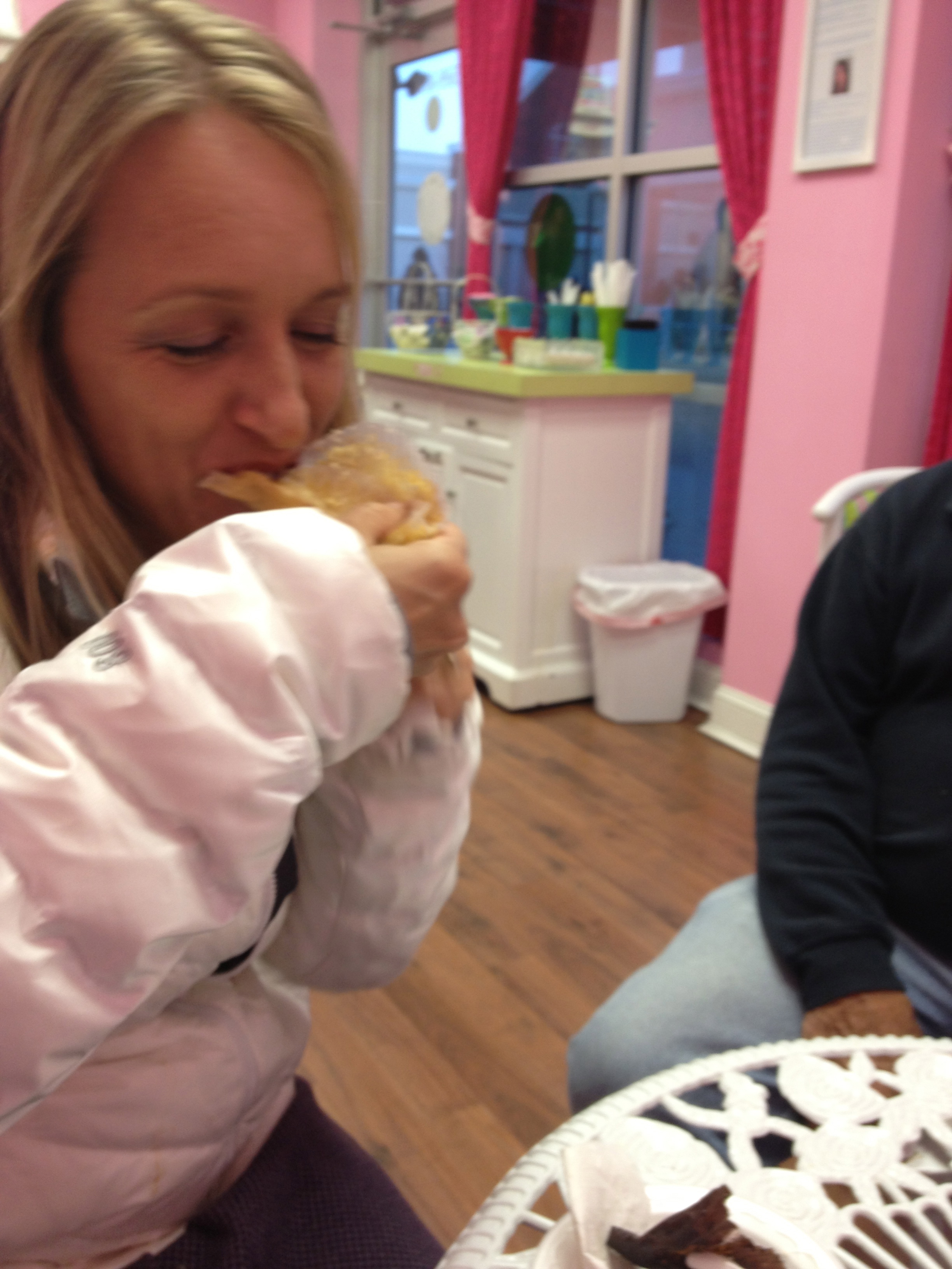 The next stop was supposed to be the Williamsburg winery. Sadly, it closed at 4 and we didn’t get there until almost 5. We turned around and headed to the outlet mall to pop into Aunt Victoria’s cupcake shop. First, however, we enjoyed some fine dining in the food court and purchased a few jewels at the Brighton shop. Finally, we made our way to Sweet Baby Cakes.