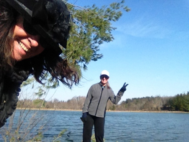 Saturday was beautiful and sunny. Cyndi and I climbed the mountain behind my mother’s house and then took a walk to the lake .