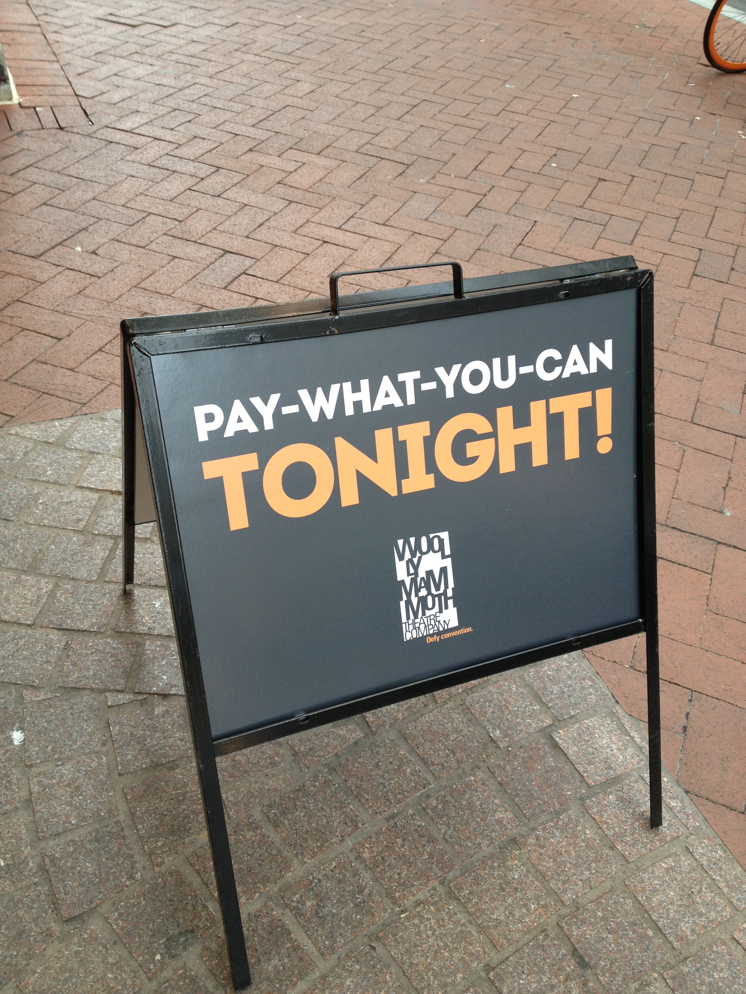 The Woolly Mammoth theatre is known for having innovative new plays and serves a sort of R&D role by staging new and innovative productions. They make it easily affordable with their “Pay-What-You-Can” performances. The last one I saw was Two Men in Pajamas. I saw it and didn’t have much to say about it and decided not to blog it. Suffice it to say, I was not a fan. This time, however, I was happily surprised.