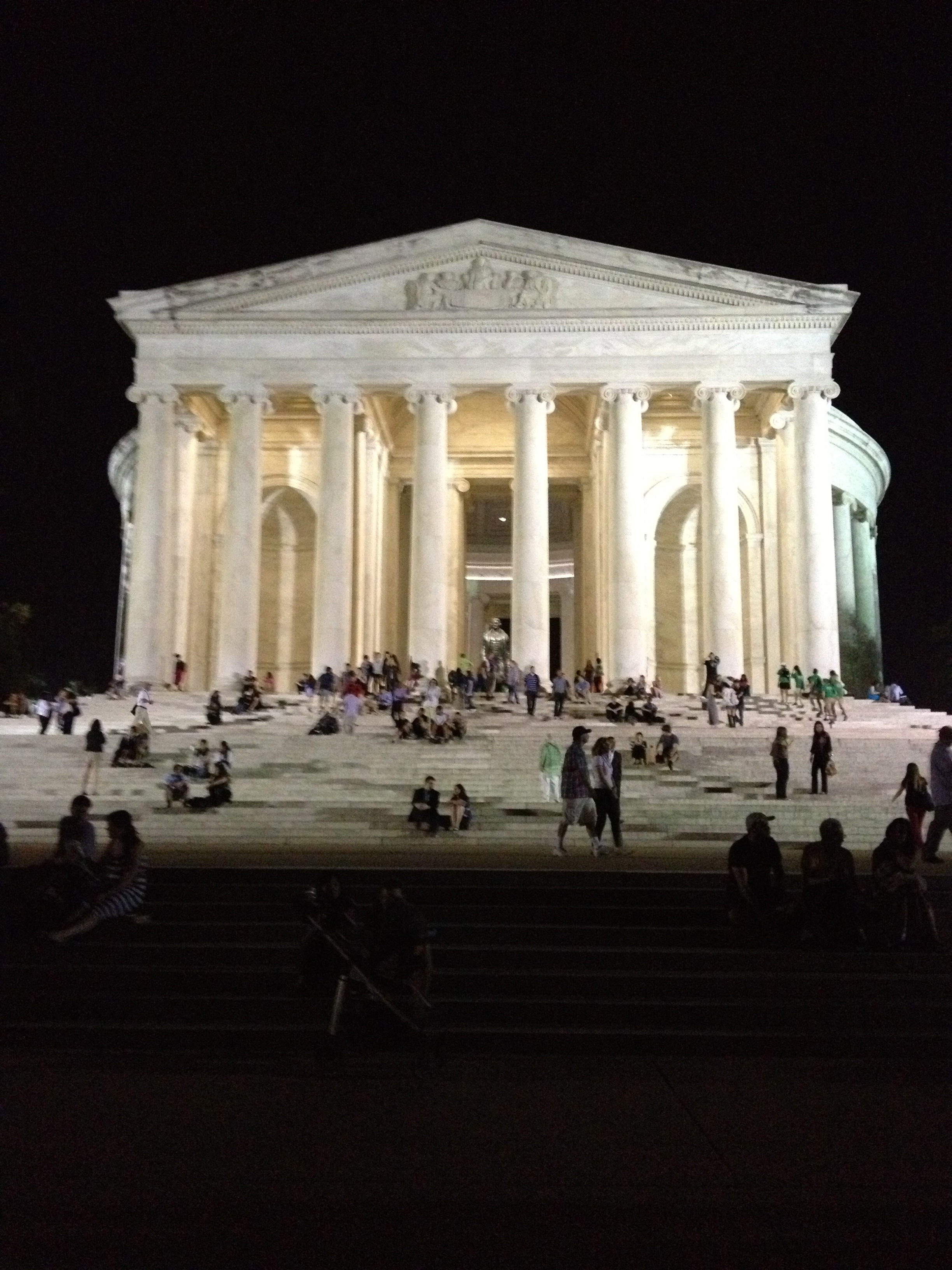 In fact, we enjoyed it as we slowly eased past the Washington Monument. By the time we rounded the Jefferson, the sun had set and talk turned to nighttime monumenting.