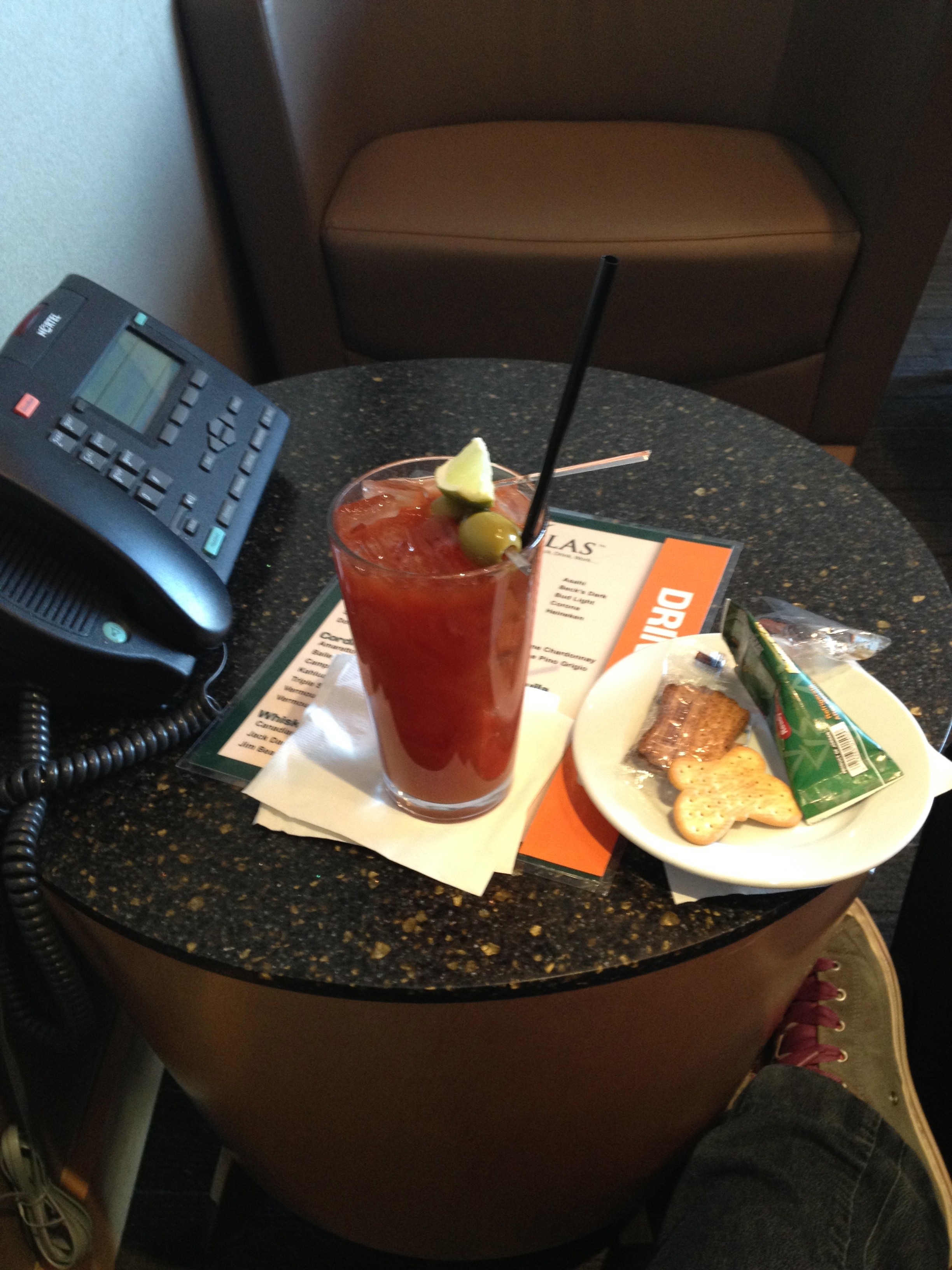 After Armen left, I dropped off my rental car and headed back to the airport to spend some quality time in the club lounge. Thankfully the free cocktails and snacks totally relaxed me for the red eye ahead…