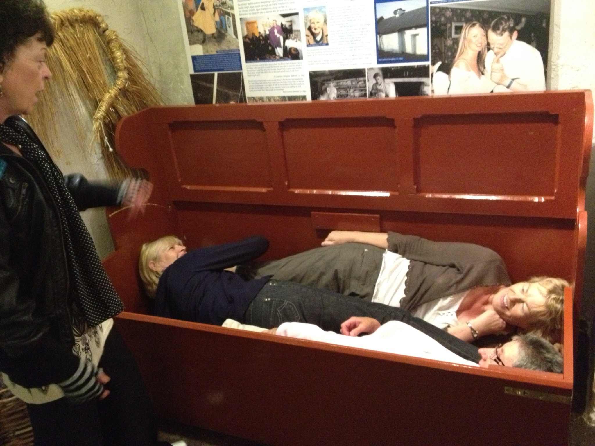 Part of the castle was hollowed out and filled with what one would typically find in one of the vernacular cottages. Some of the plucky Scottish tourists with us volunteered to demonstrate the “head, toes, head” sleeping arrangements of the Irish “day bed” when Anna invited us to “give it a go”.