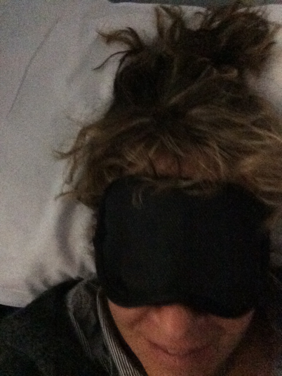 I managed to doze off in a drunken stupor pretty quickly, but a couple of hours into it I woke up with a raging headache, drenched in sweat, with a very stiff neck. Turns out the angle flat beds mean gravity is constantly pulling you towards the foot of the bed. And the space is shaped like a sarcophagus, so there is no way to turn from side to side or sleep in any position other than flat on your back or on your side without bending your knees. Fetal position sleepers can just abandon the idea of getting comfortable at all. The temperature of the cabin was somewhere between sweltering and blistering and I was wearing many layers and wrapped in the Heavenly Down Blanket.