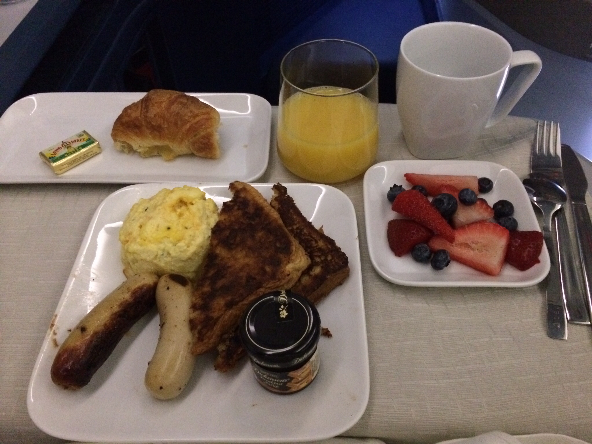 After that I was wide awake so I passed the time watching episodes of Veep and trying to rehydrate. Shortly before we landed they served breakfast. I opted for French toast (obviously) and skipped the mimosas (of course!)