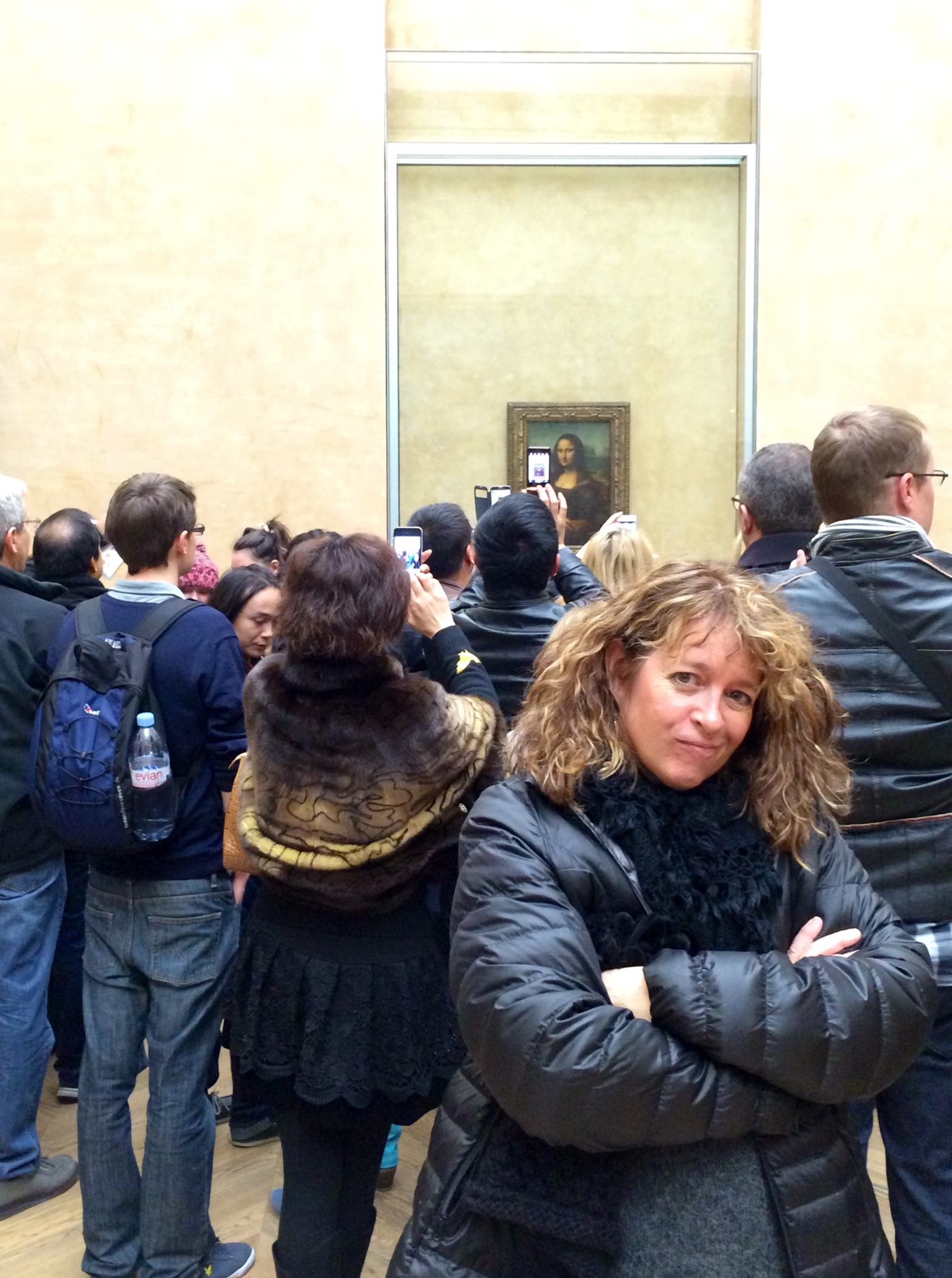 The Mona Lisa is very small, under a wall of glass, and surrounded by tourists snapping dozens of pictures.