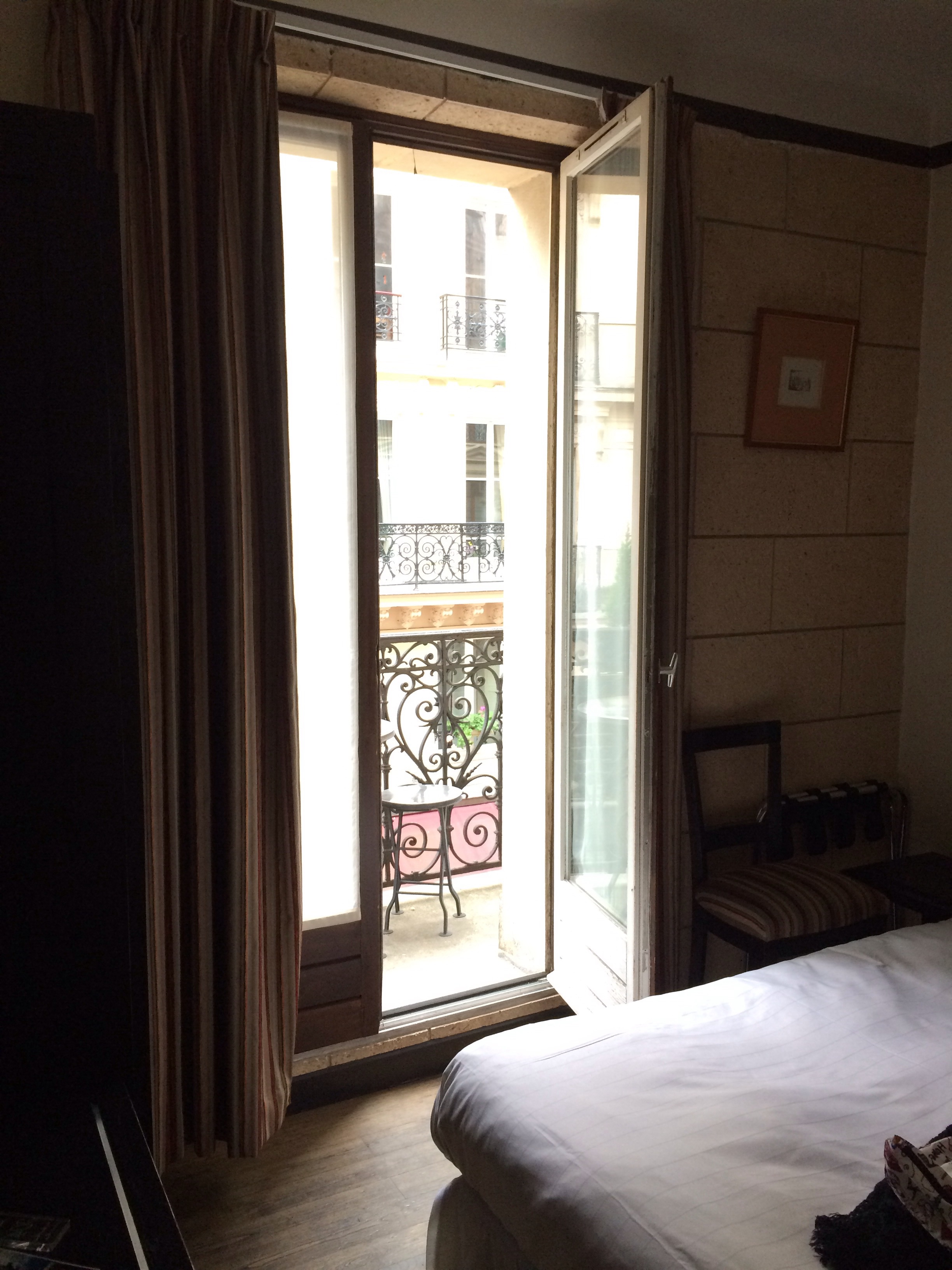 We caught the metro back to the hotel to check into our rooms. Mine was on the second floor, with a very Parisian looking balcony overlooking some cute little cafés.