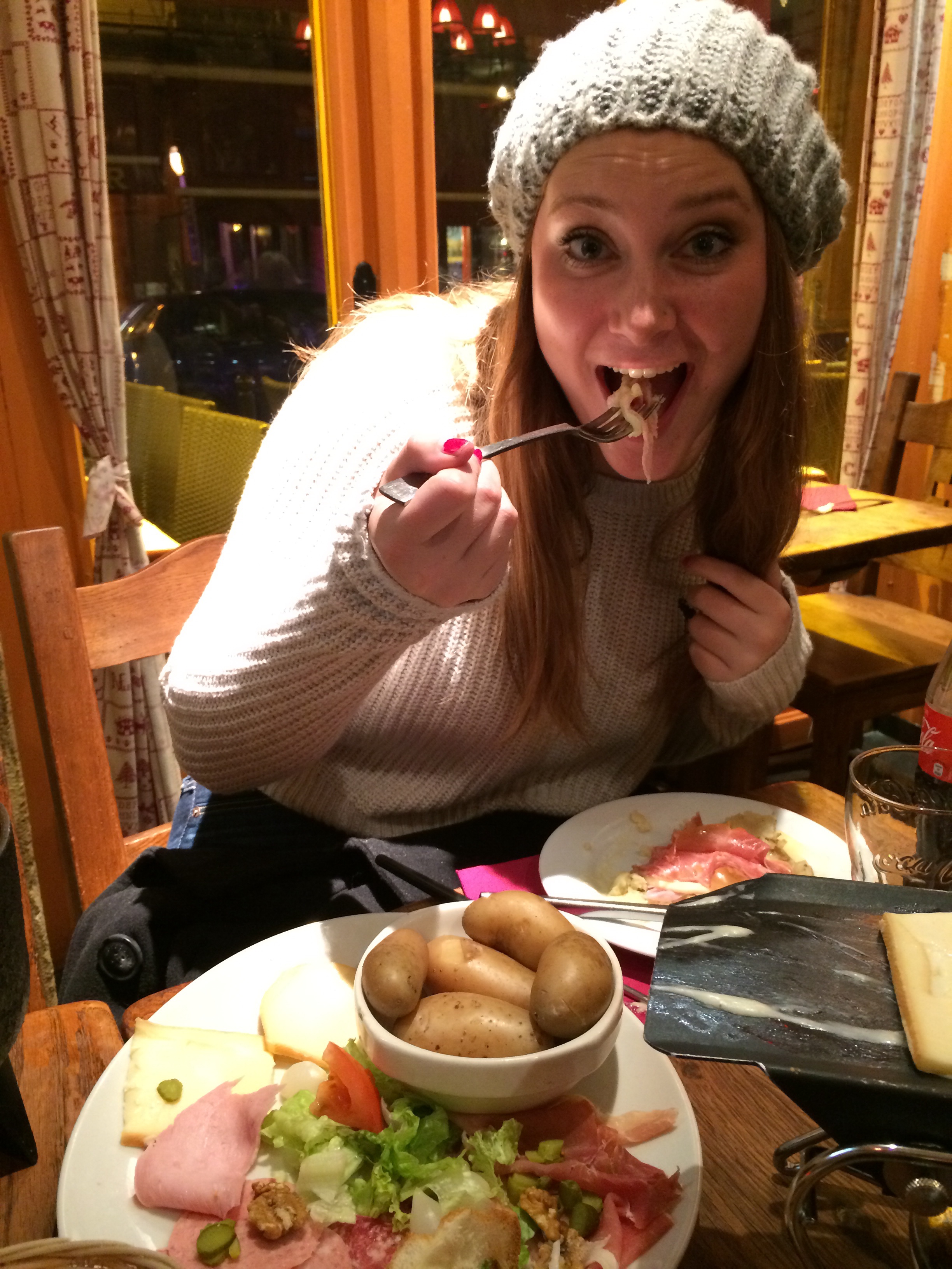 Back at the hotel, Jenni disappeared in her room so Delaney and I decided to visit the cafe across the Street. Although the hotel desk guy said he didn’t recommend eating anywhere in the neighborhood, if we had to go across the street we should try the raclette. So we did!