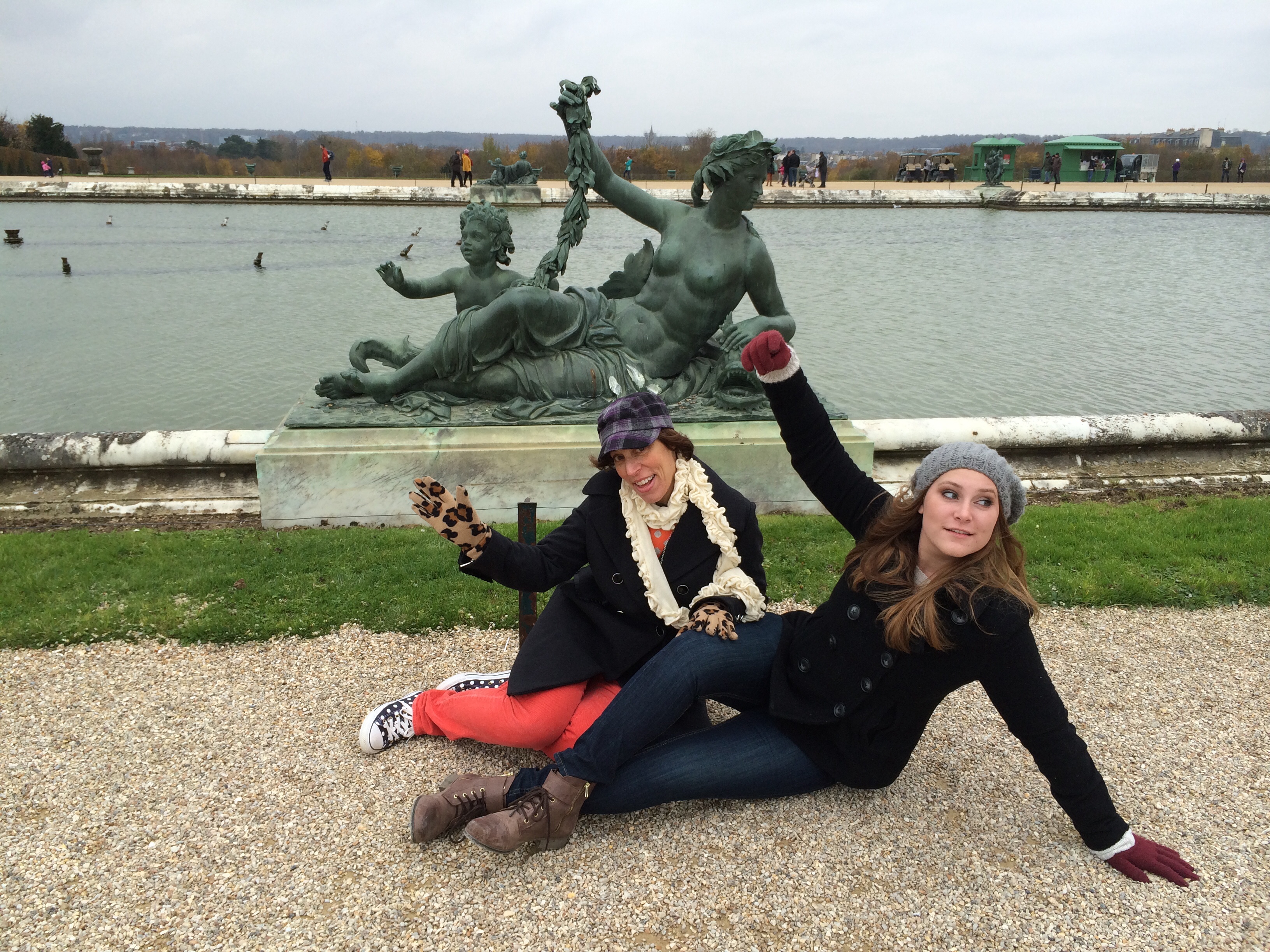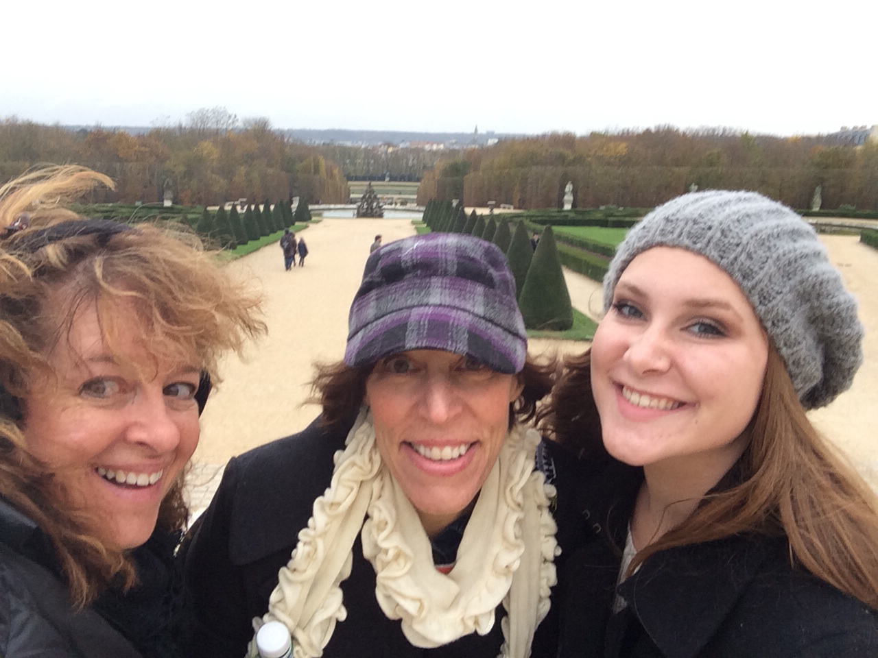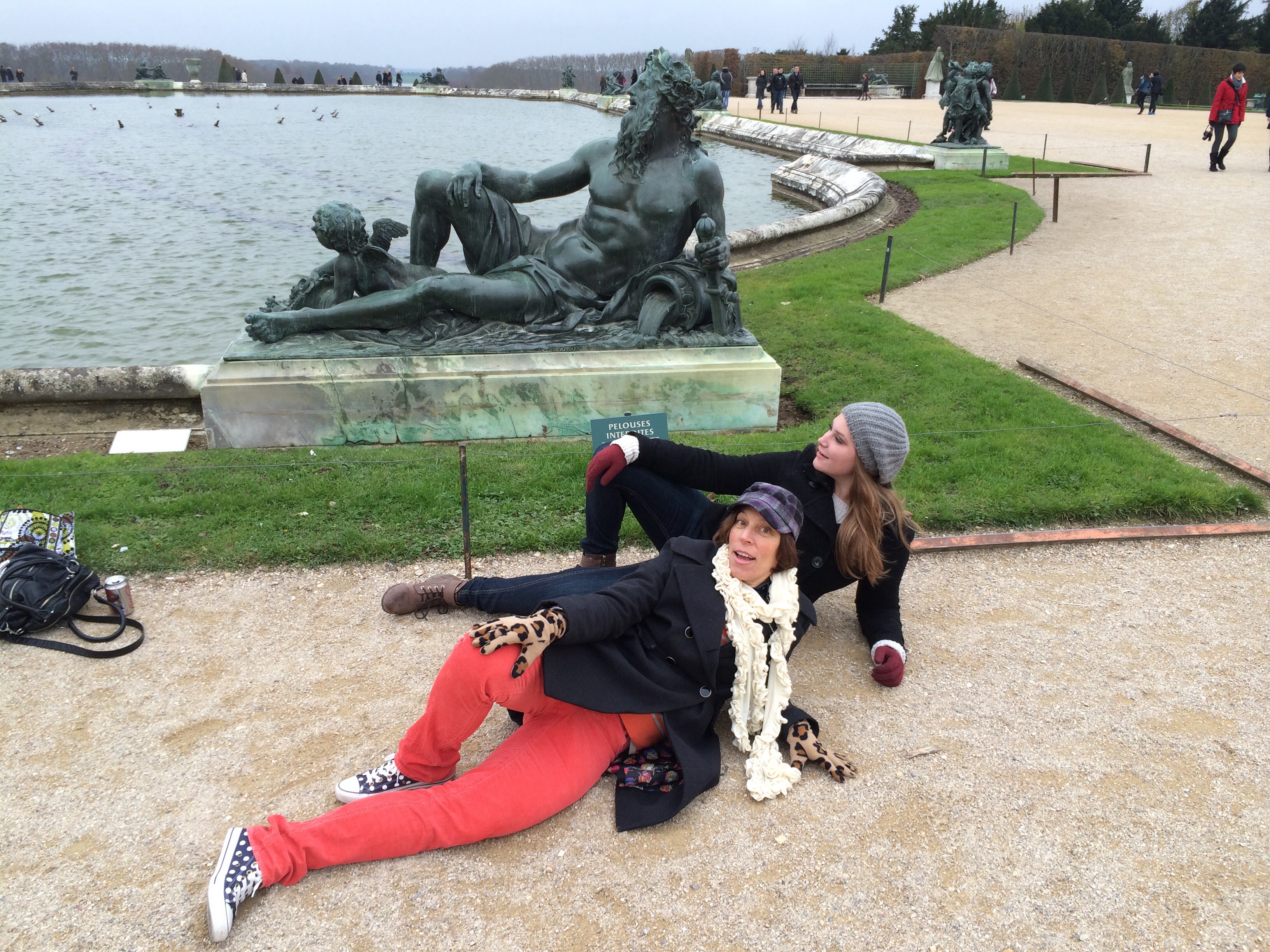 Each year nearly ten million people visit Versailles, and I can totally understand why. After a quick breakfast at the hotel, Jenny, Delaney and I hopped aboard the RER train and headed to the palace. along the way we were highly entertained when an old man broke out his accordion and began to play. Our fellow passengers were also entertained when Jenny and Delaney danced along.