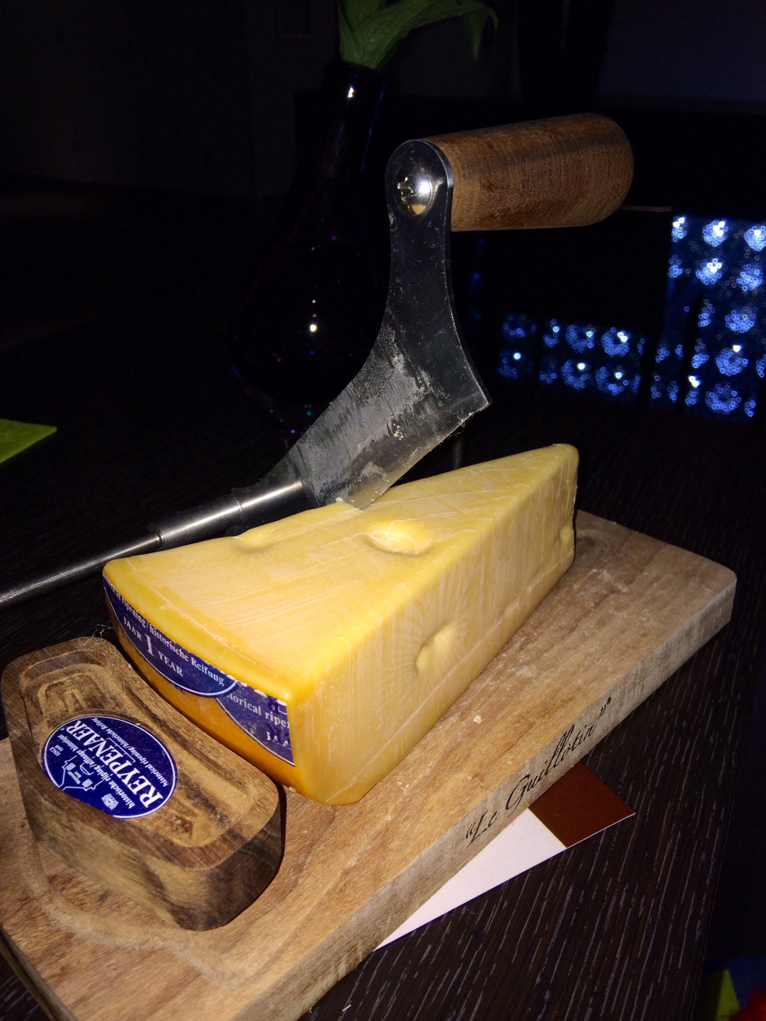 My friend Peter lives in the Netherlands and came into the city to meet us. We were still exhausted from our journey so we met him in the hotel bar. He reviewed the itinerary and declared we’d listed all the best sites! He also ordered some very Dutch foods for us to try. First up was Bitterballen, and it was even better than at lunch! He also ordered some kaas, which is Dutch for cheese. And this was not just any cheese! Peter said it was at least three years old and they served it on a cute little cheese guillotine.