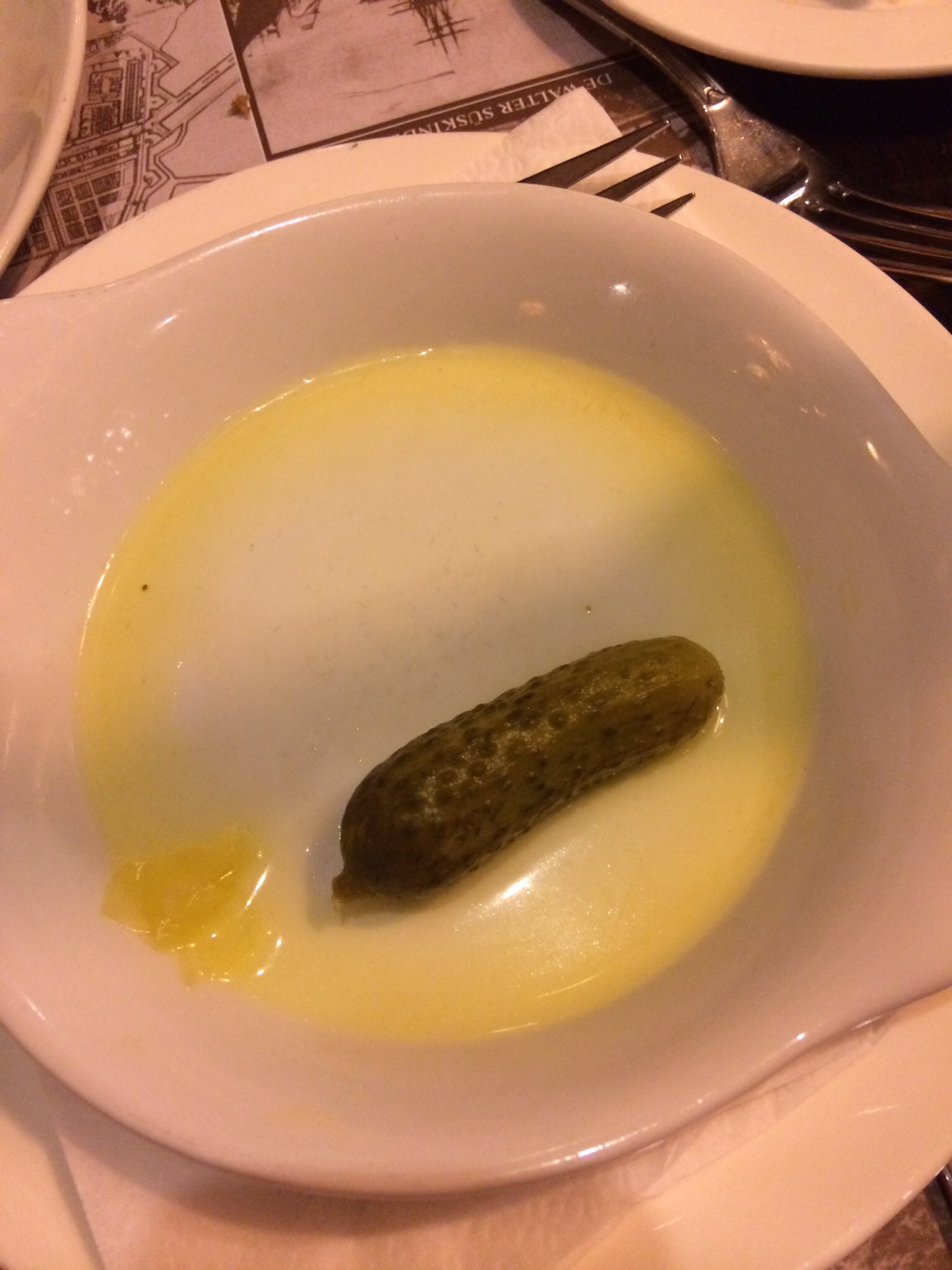 We ordered some beer and they brought us some delicious brown bread while those of us who couldn’t have mashed potatoes made up our minds! We ordered the Amsterdam Pickles as an appetizer, which was an incredibly good decision.