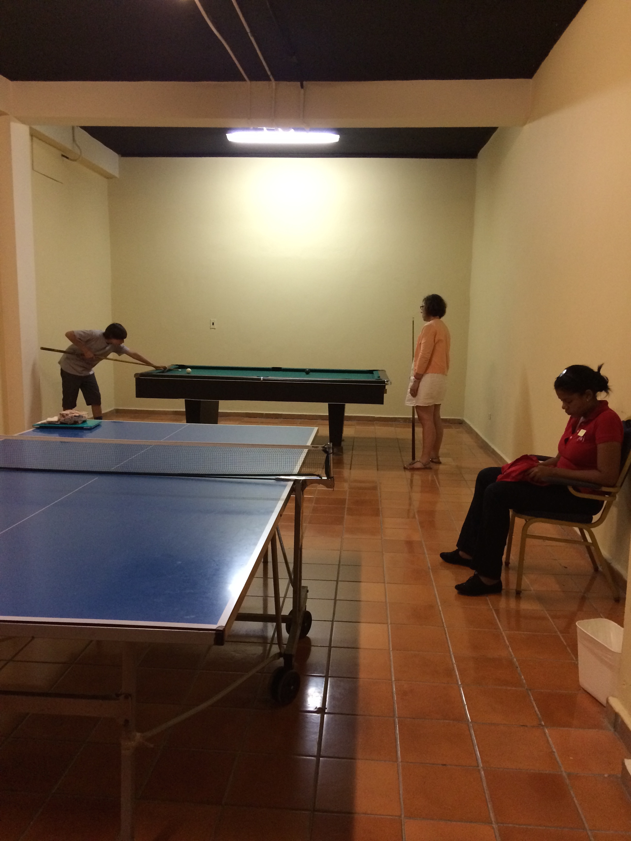We caught a golf cart over to the Arcade and finished up our evening with a few rounds of pool.