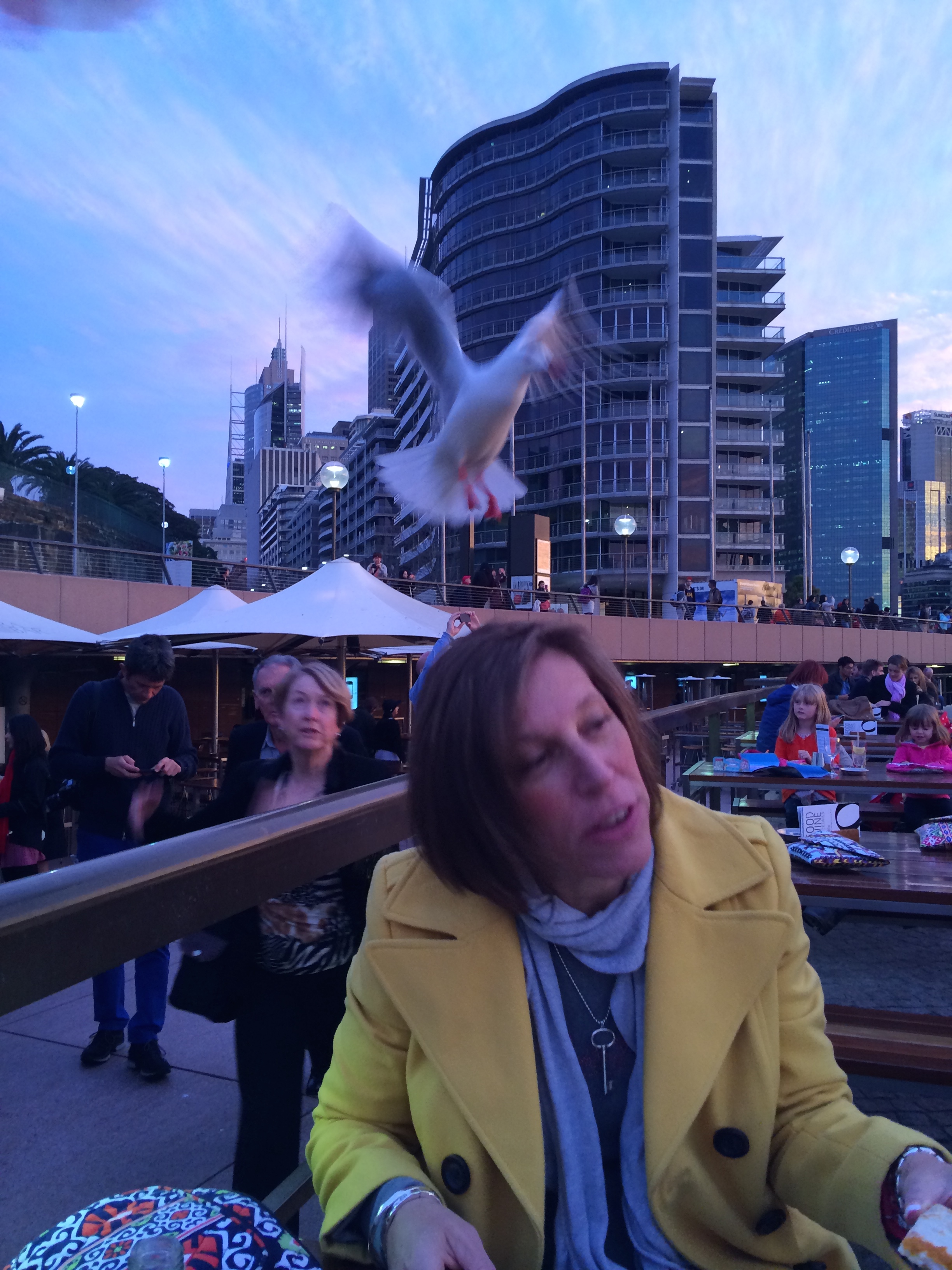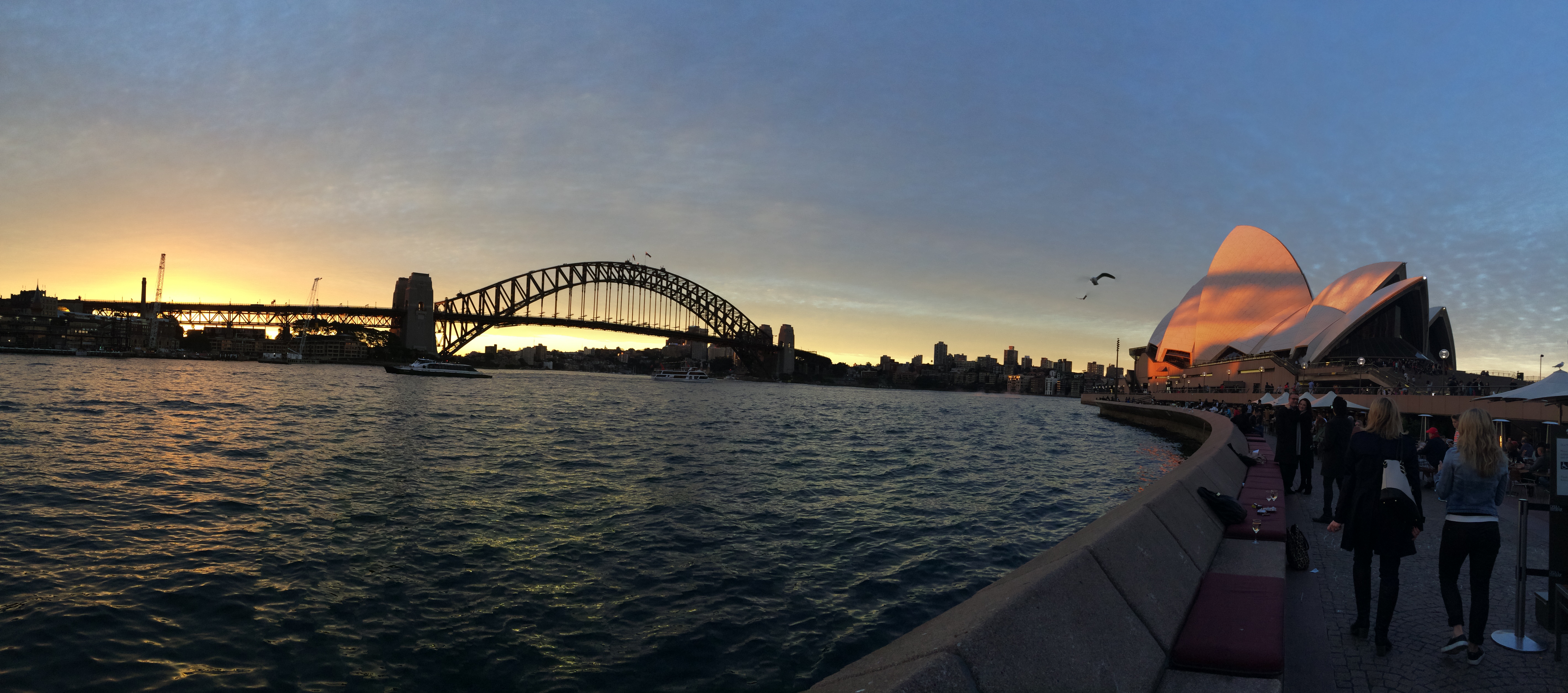 We sat at a table with the city skyline on one side and the opera house on the other.