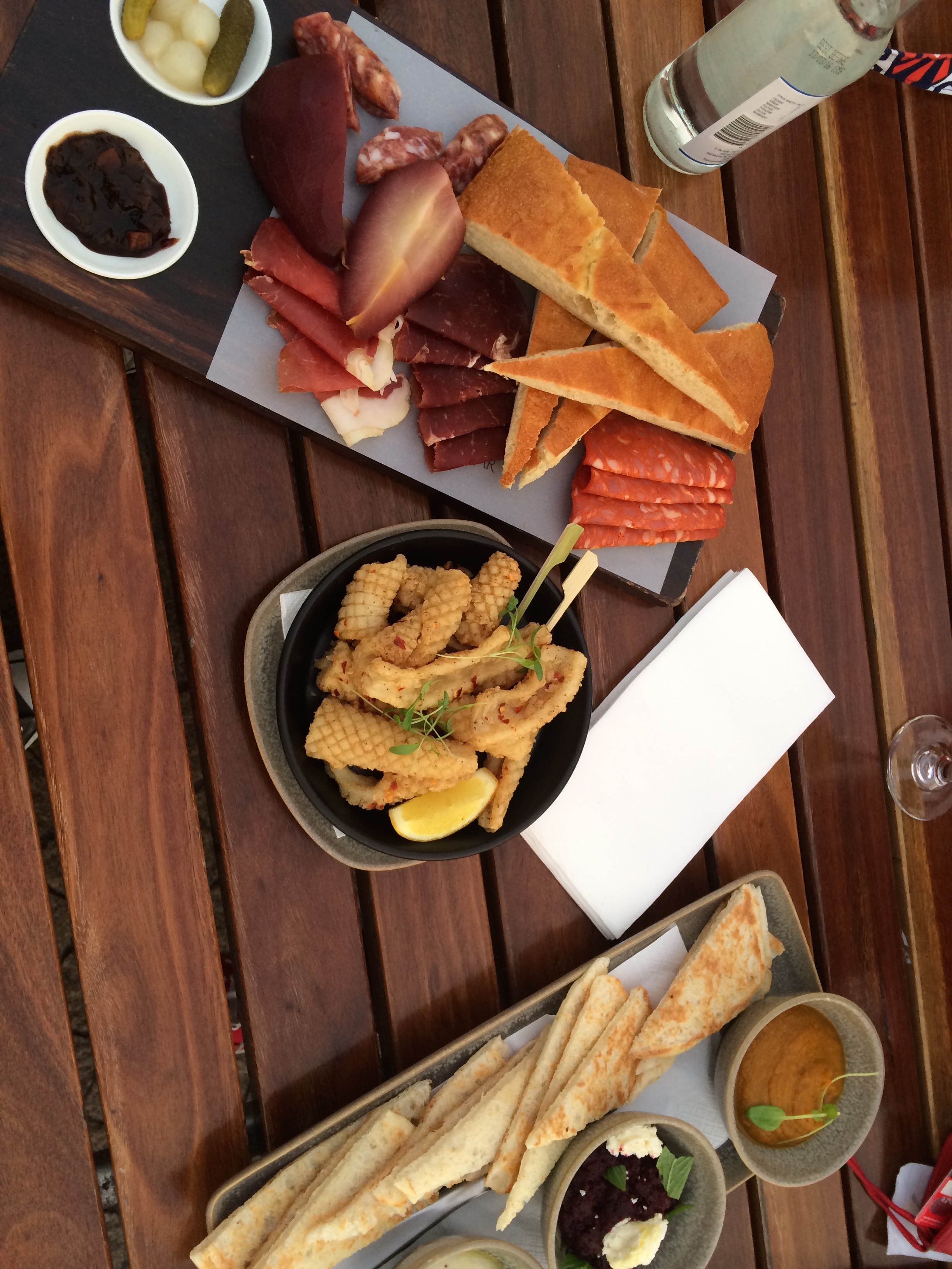We ordered some snacks and Jeannette and I got some bubbles (champagne).