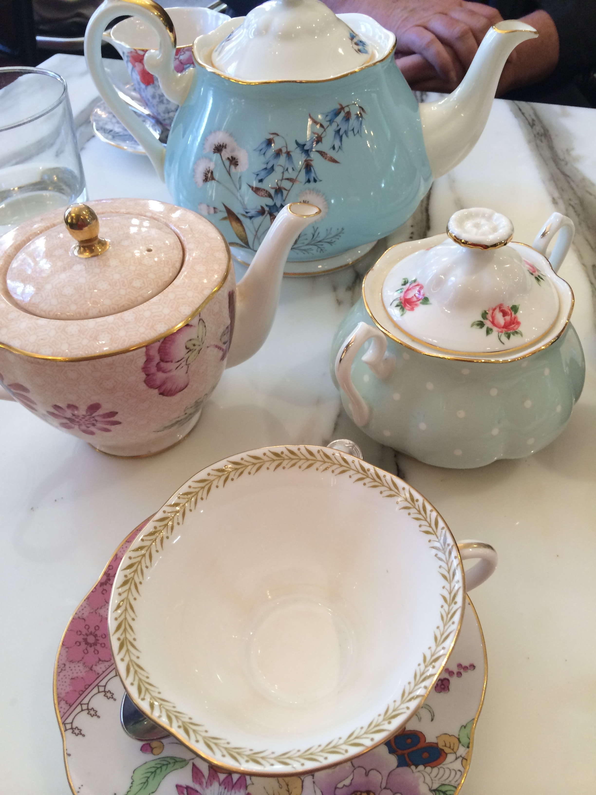 Inside is a high-end shopping plaza with lots of little coffee bars and boutiques. We didn’t see a tea shop right away so Cheryl patiently led us through corridor after corridor so we could admire the amazing stained glass windows and antique clocks.
