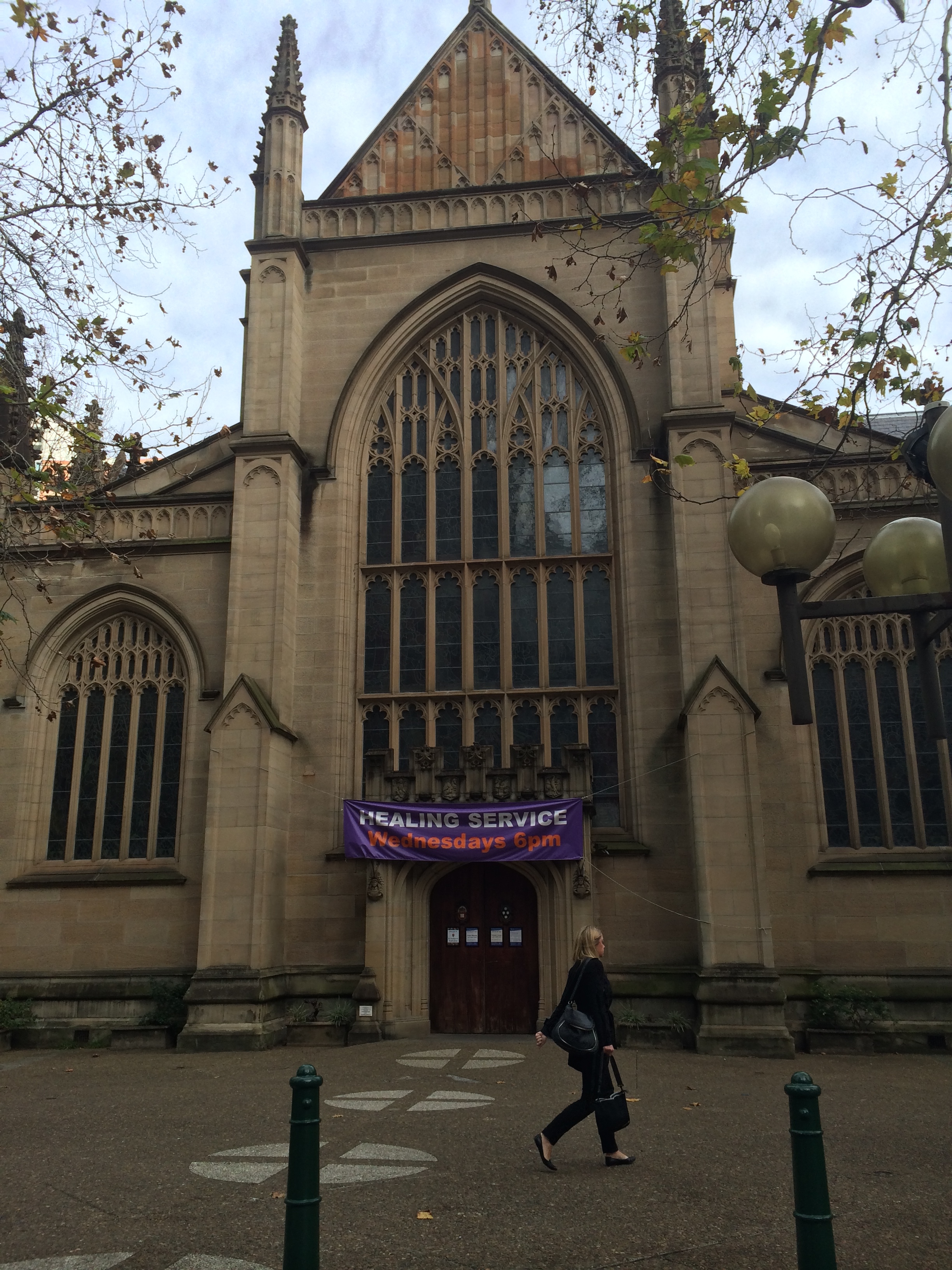 Ian headed back for a meeting and Cheryl graciously offered to walk with us to find a local tea shop where we could have some tea and charge my laptop. I lumbered along dragging my heavy bag. We walked past St Andrews, a beautiful church in the heart of the city.