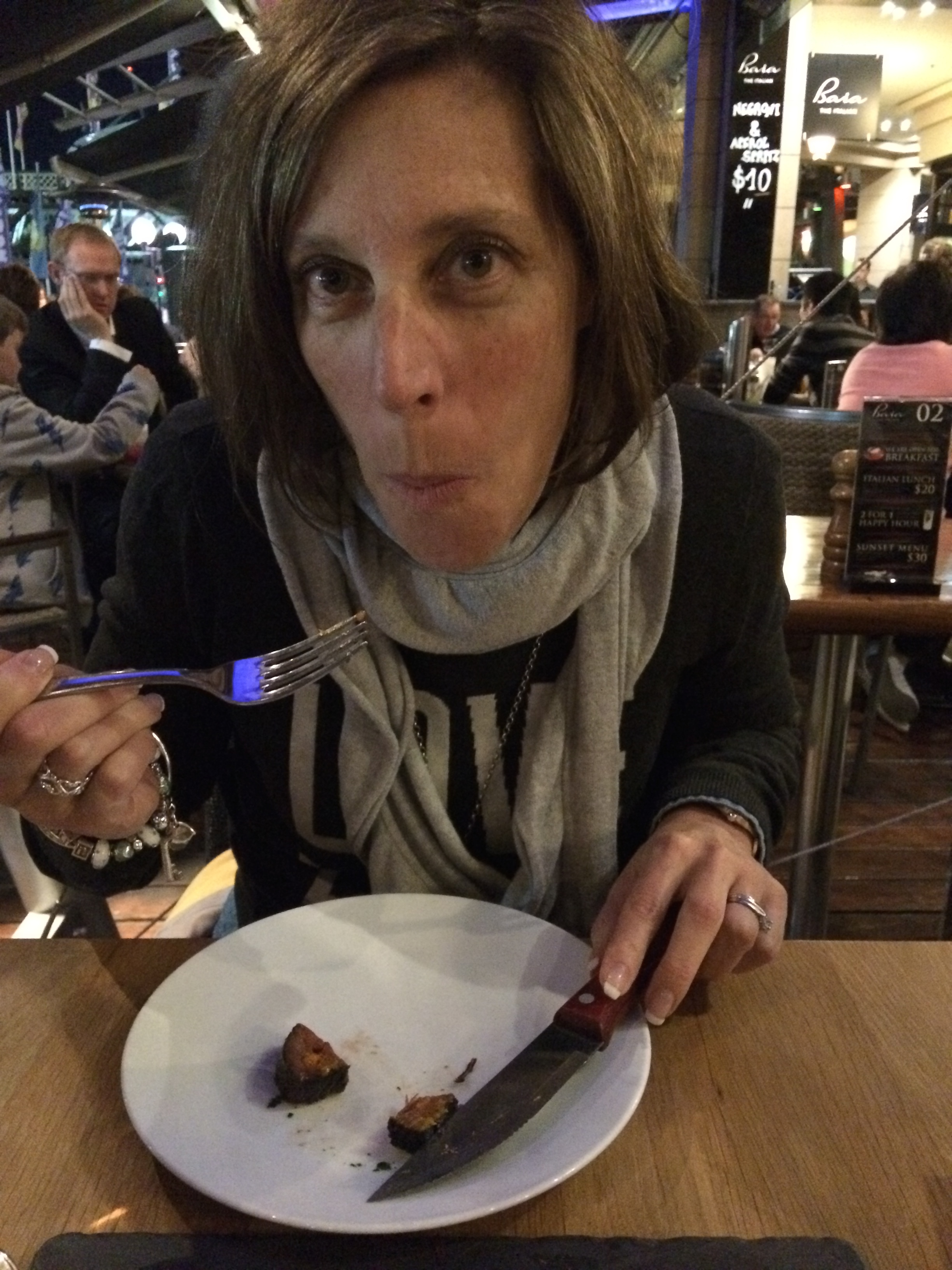 We walked back across the bridge and stopped for dinner at Cockle Bay Wharf. We settled on the I’m Angus Steak House when we saw kangaroo on the menu.