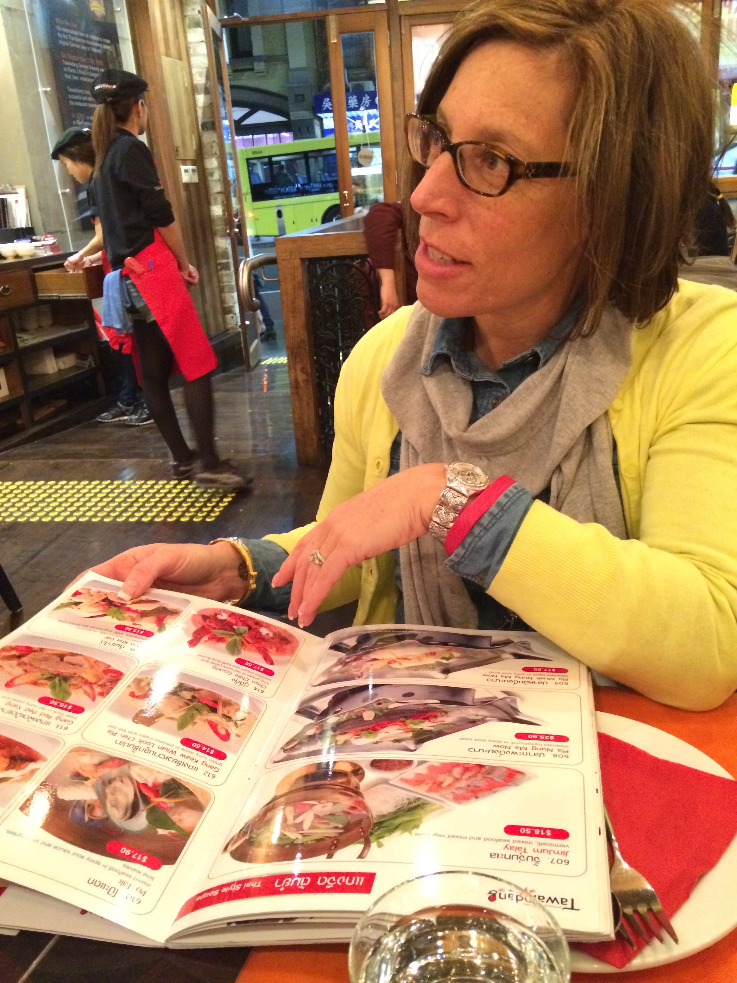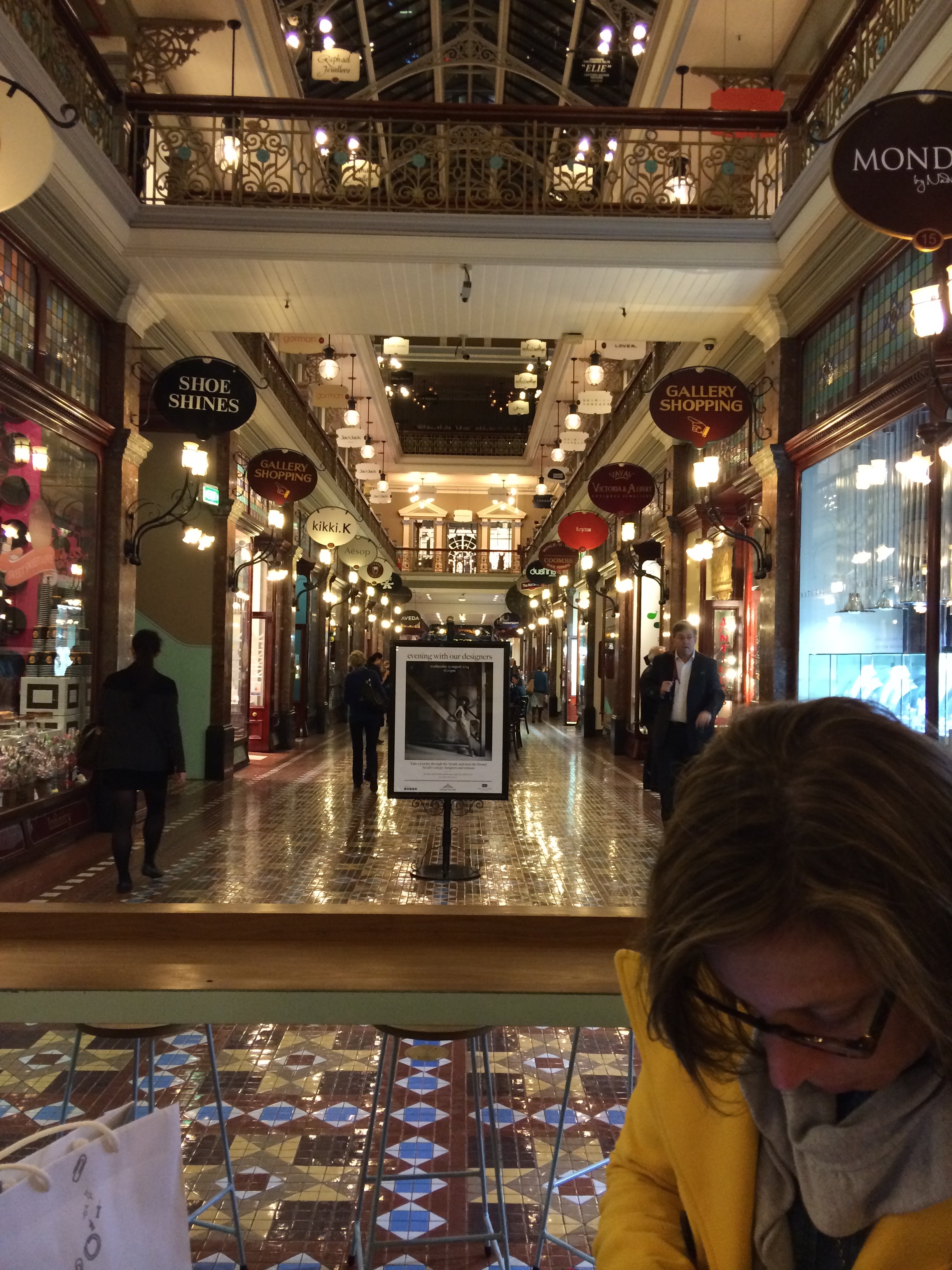 Then we dropped our bags at the hotel and headed out to explore the city. The first stop was the Queen Victoria Shops to pick up a charming little travel book tweed spotted the other day. We popped into Swatch and Jenni found a watch with sprinkles and one with polka dots. I bought a red one. We wandered out and walked through the Sydney Arcade.