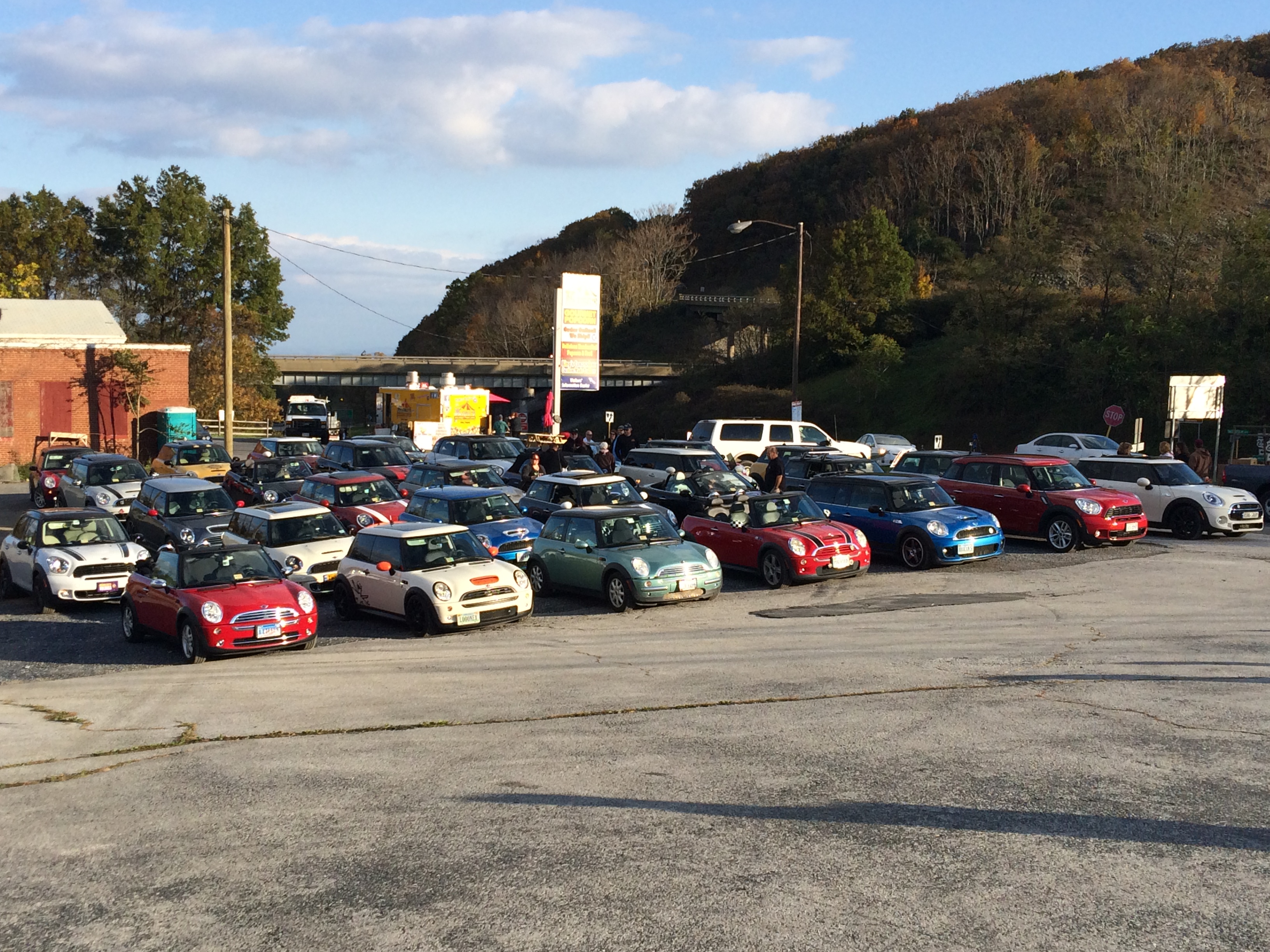 All of the car lined up so after we climbed out and took a bathroom break many of us stood around and looked at them. While we were there, my DC Metro Mini club president Ali and her husband Mark arrived. They’d been driving all week in honor of their 10th anniversary and the HR Fall Color Run was their final activity.
