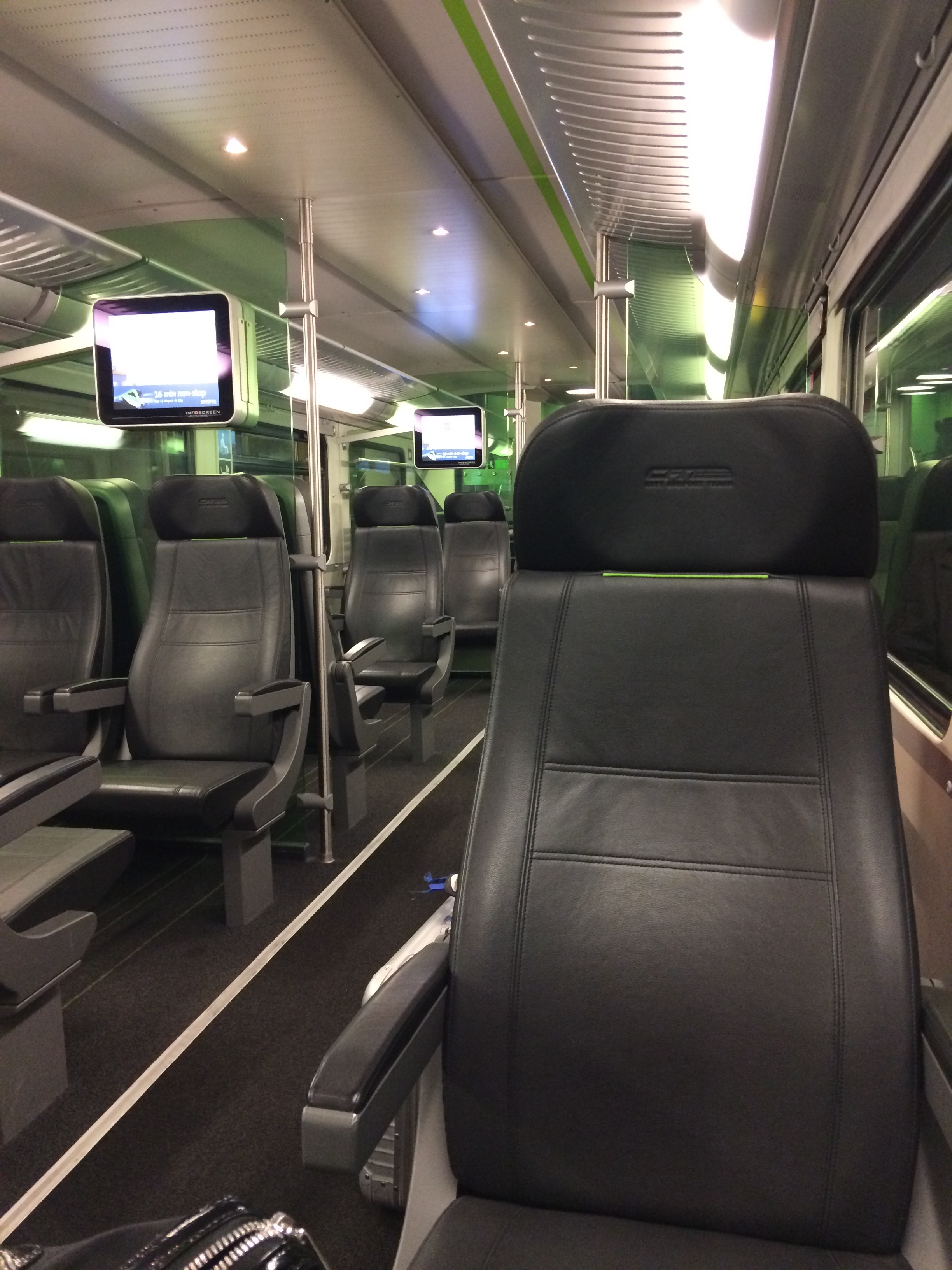 The train is a direct shot to the airport and only takes 15 minutes with comfy seats and video screens.