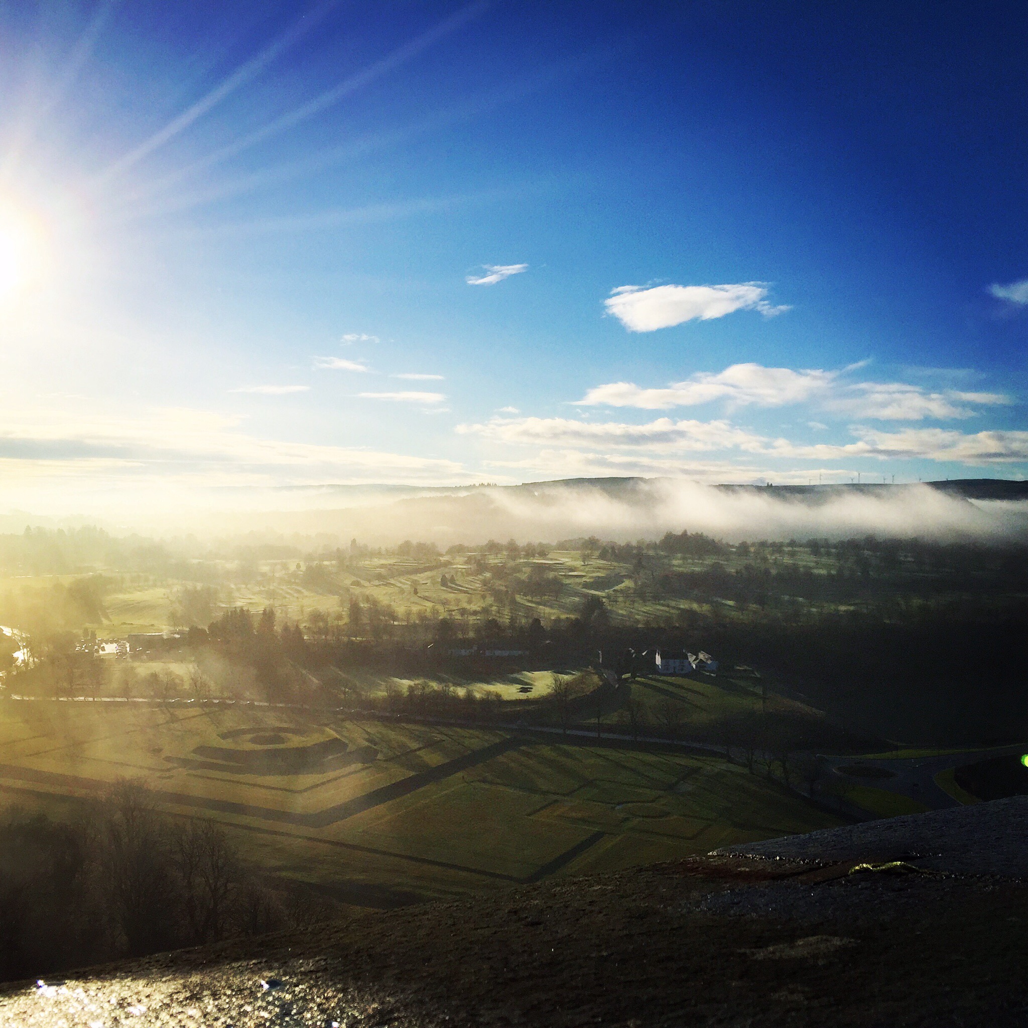 Not just because I’d climbed to the top of a castle after I climbed a damn mountain to get there, either! It was glorious. On one side of the castle, fog was in the valley. On the other side I could see snow capped mountains and a very tall monument.
