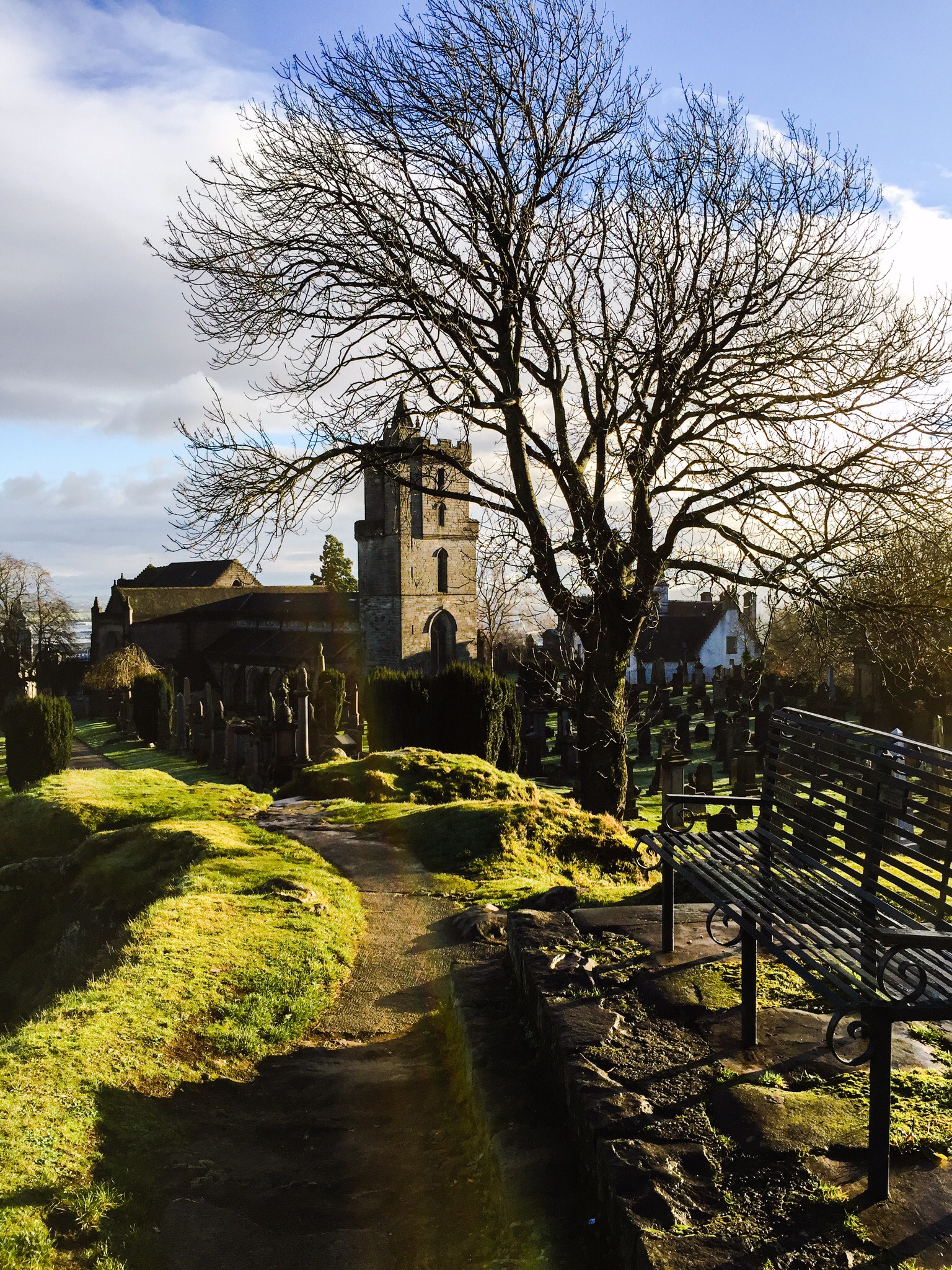 Afterwards I walked from the castle to the church next door. The Church of the Holy Rude is the second oldest building in Stirling (the castle is number one) and was originally building the 1100’s. It burned down in 1405 but was rebuilt shortly after. Scottish kings had coronations there, but sadly it’s closed to tourists in the winter. Though the graveyard isn’t!