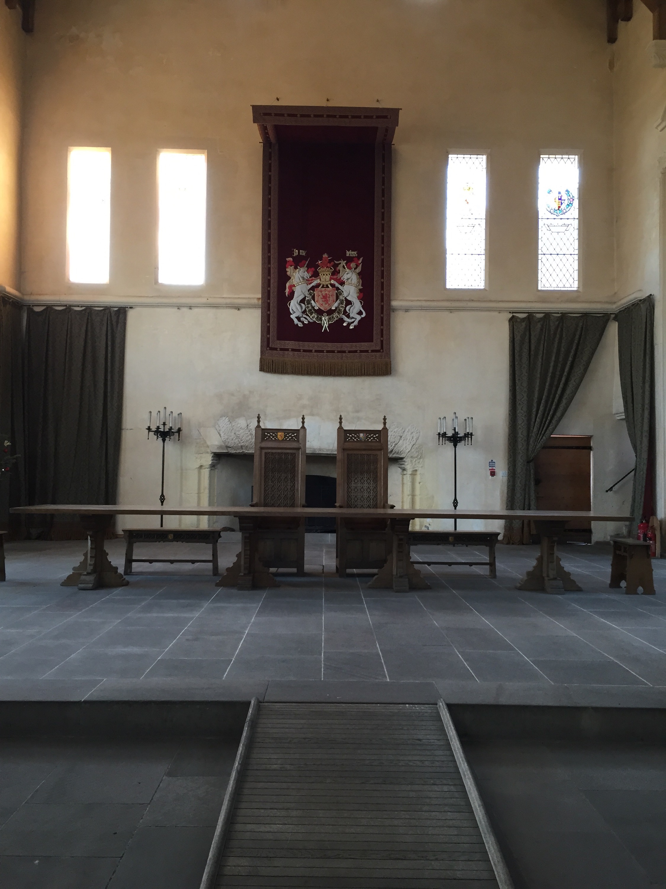 I loved the dining room. They had a long trestle table set up at the head of the room with two thrones and some benches. They faced the rest of the room where more trestle tables and benches would be set up for the lesser members of court and let’s just say if I had it to do over again, I’d have gone in a completely different direction when setting up my dining room back home!