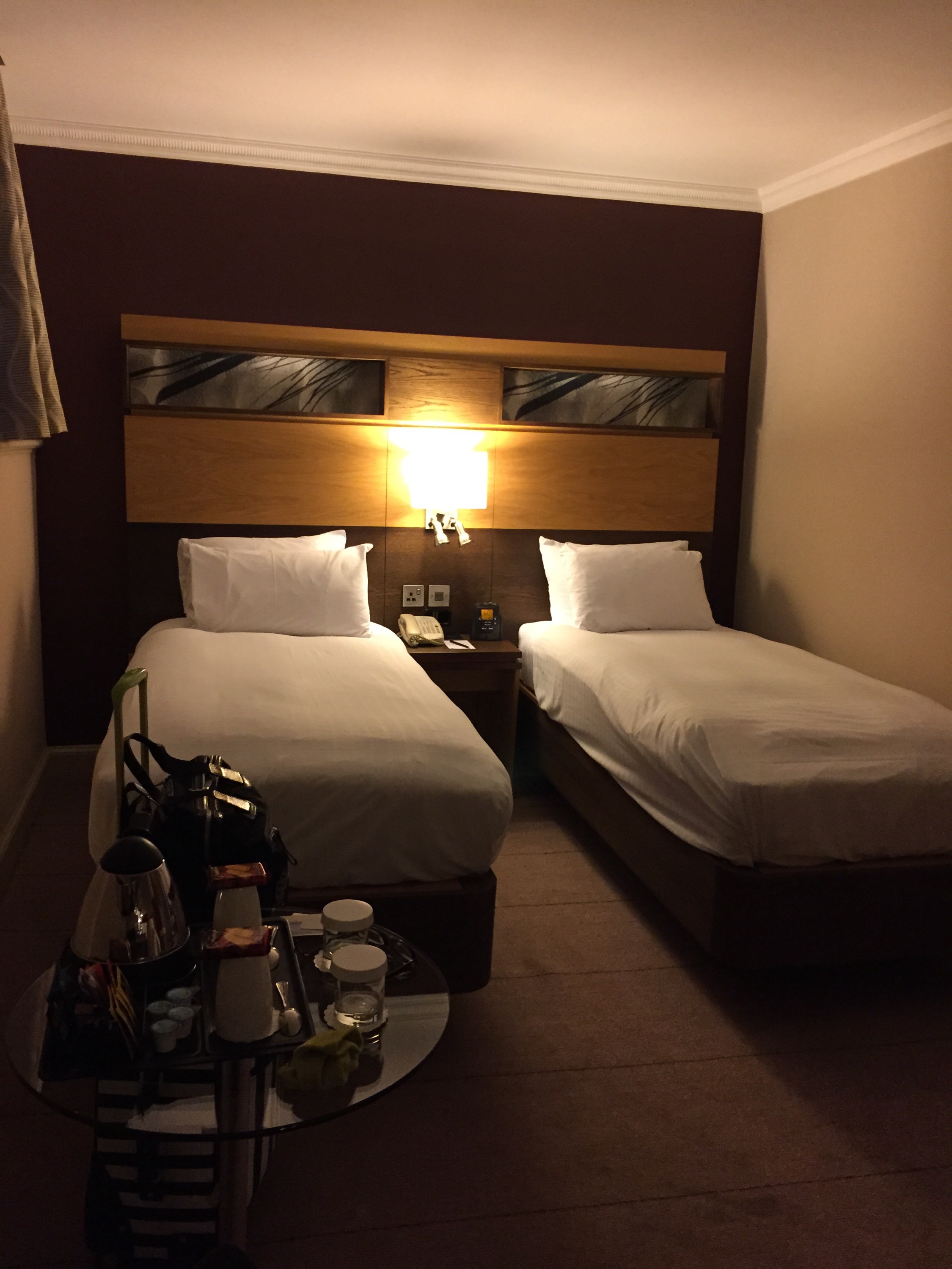 I don’t remember why I thought it would be a good idea to leave the Waldorf Astoria and move to the Hilton. Maybe I thought there would be an executive lounge. Or a shuttle to the airport. Or a fancy suite because of my diamond status. There was none of that! My room wasn’t even in the same building! Instead I was across the street and on the top floor in what could only have been the servant’s quarters back in the day. They didn’t even give me my complimentary bottle of water!