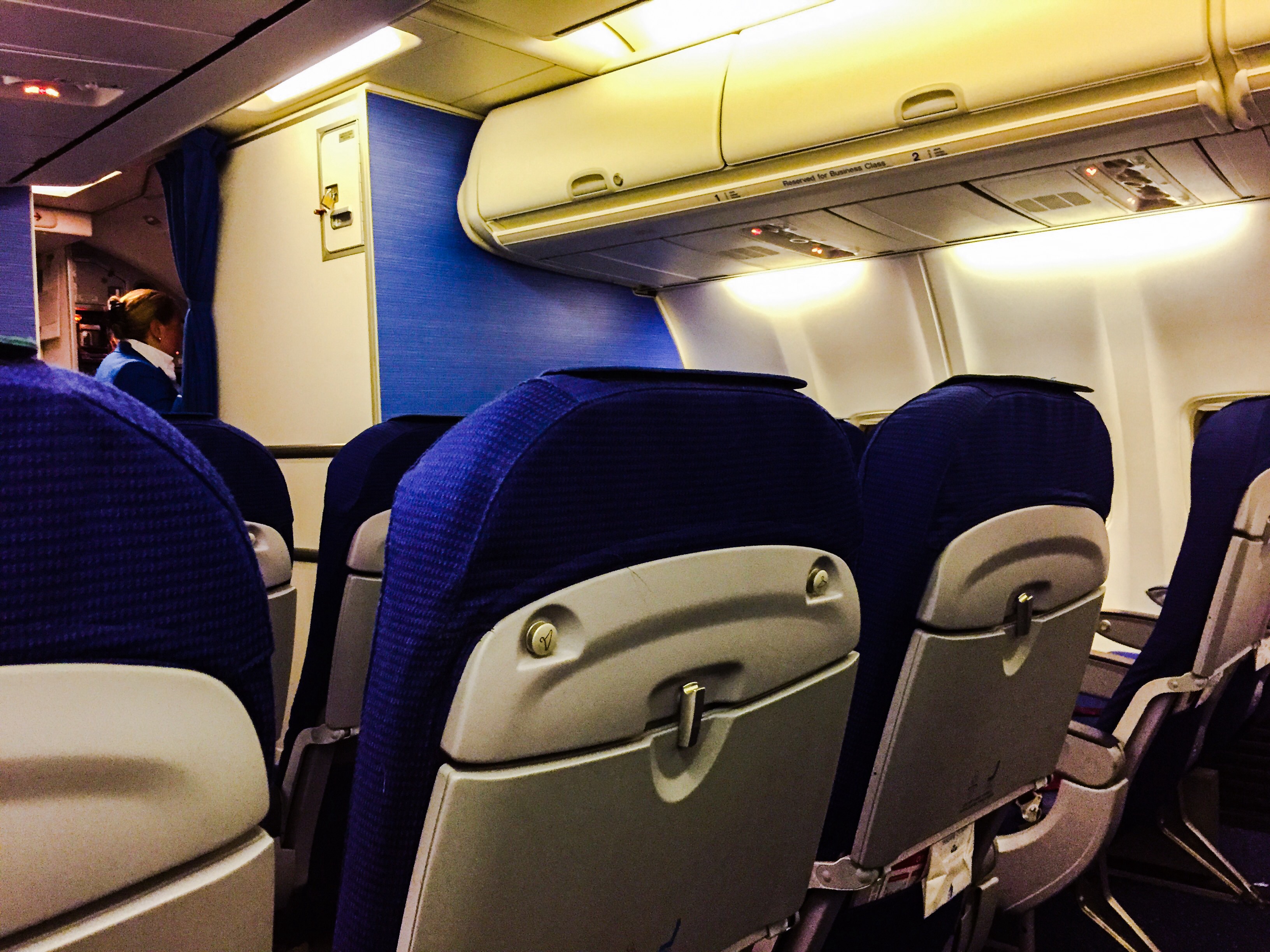 I wasn’t worried about having overhead bin space since my heavy bag slides right under the seat in front of me. And I didn’t even need to worry about climbing over the people in seats 3b and 3c. Also I was the only person in first class.