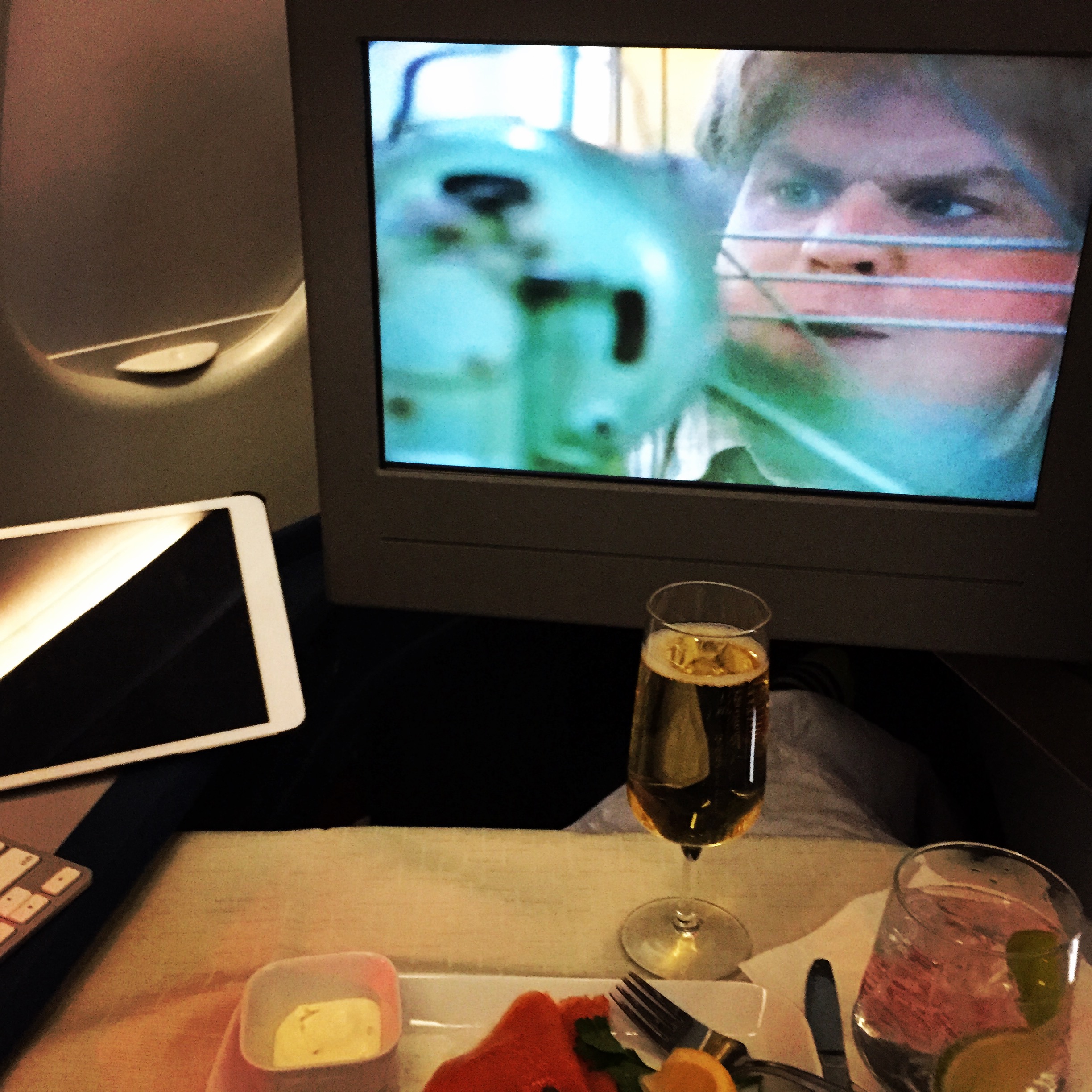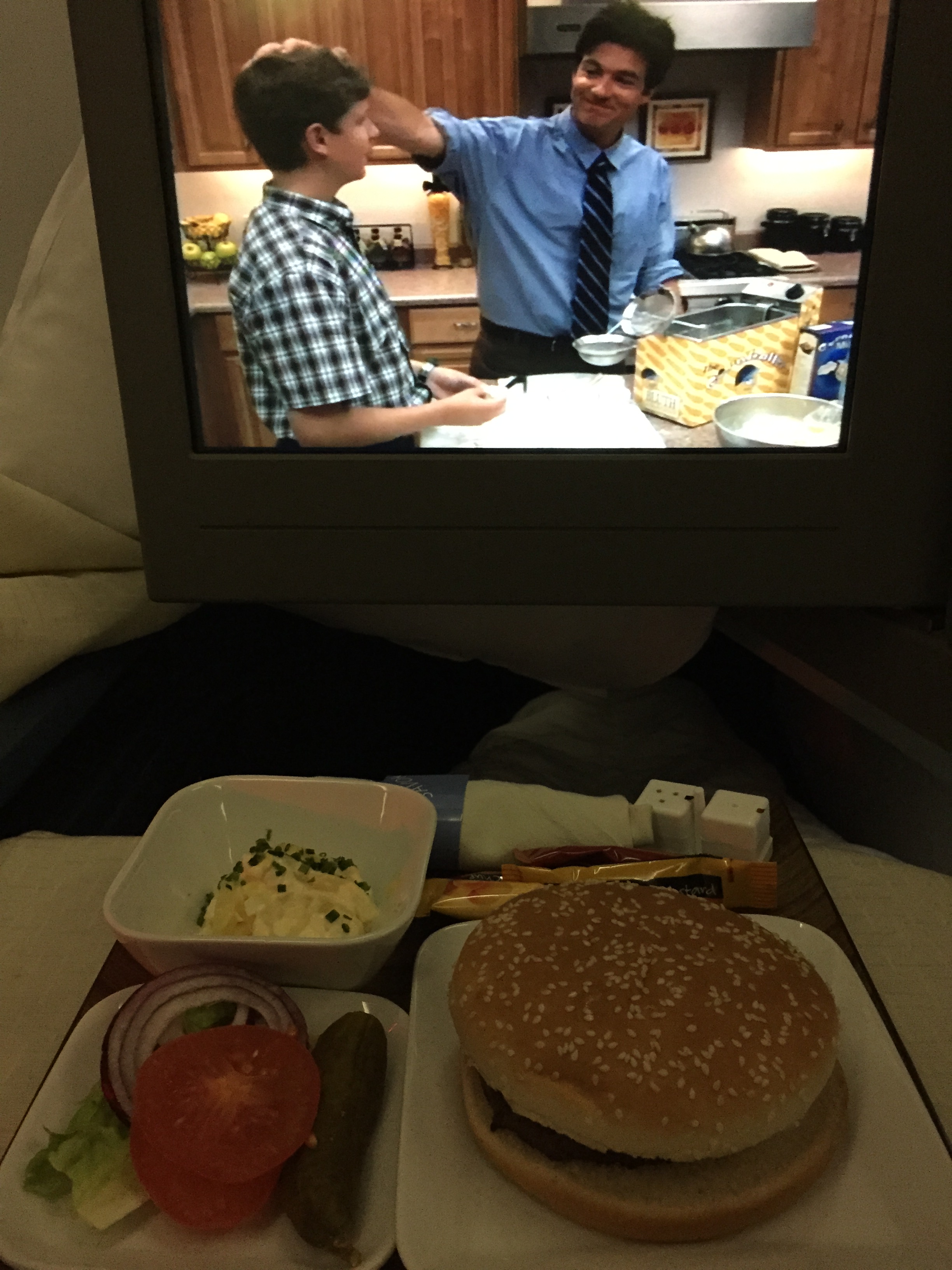 And then took a little nap. When I work up, we were still somewhere over the Atlantic so I watched Priscilla Queen of the Desert. At snack time they served some hamburgers and I decided to watch a few episodes of Arrested Development.