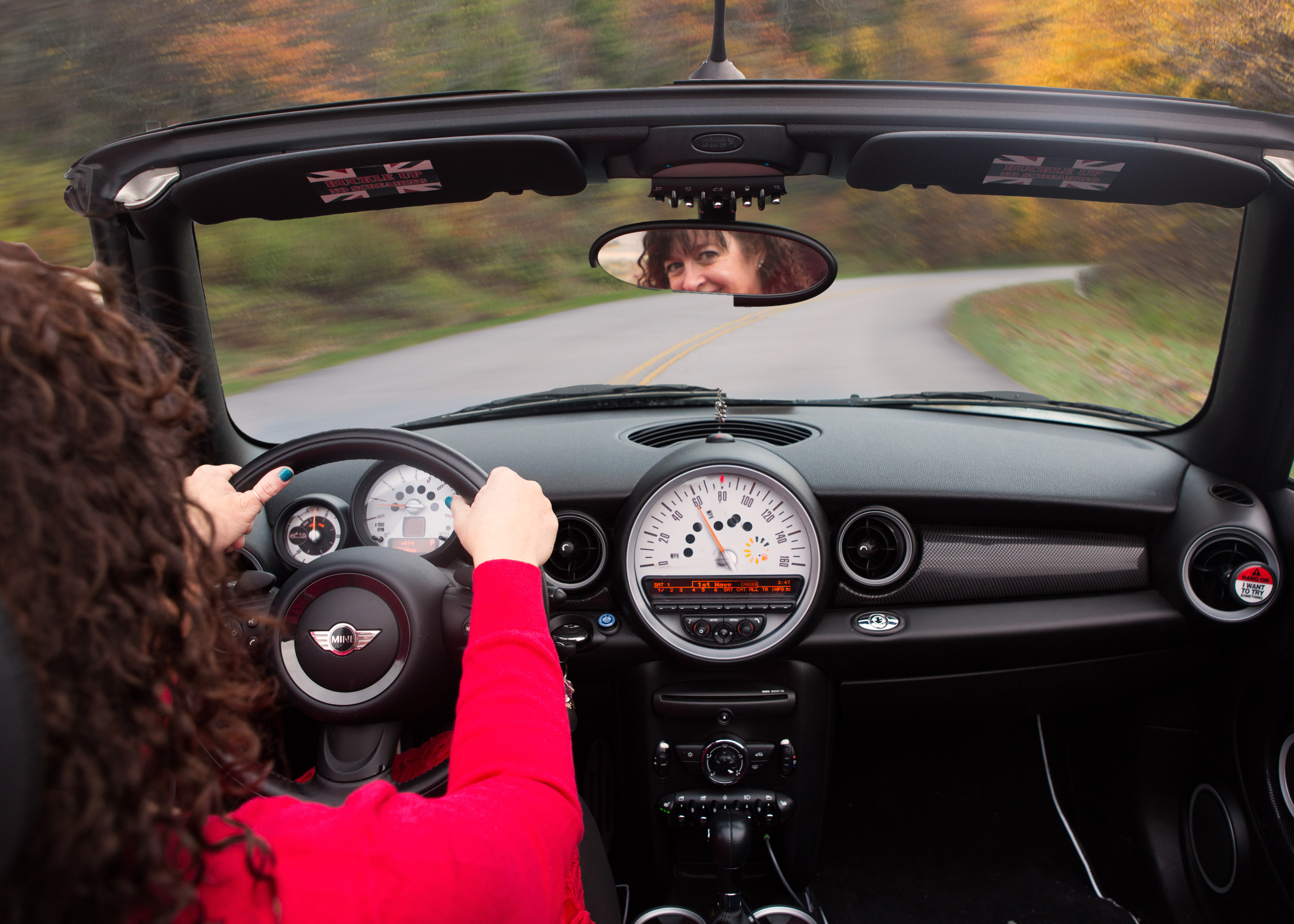Alicyn totally gets the power of the Mini and decided to shoot these pictures with My Precious. She told me to take off my top and pull it around the corner. We started with a few shots of me driving.