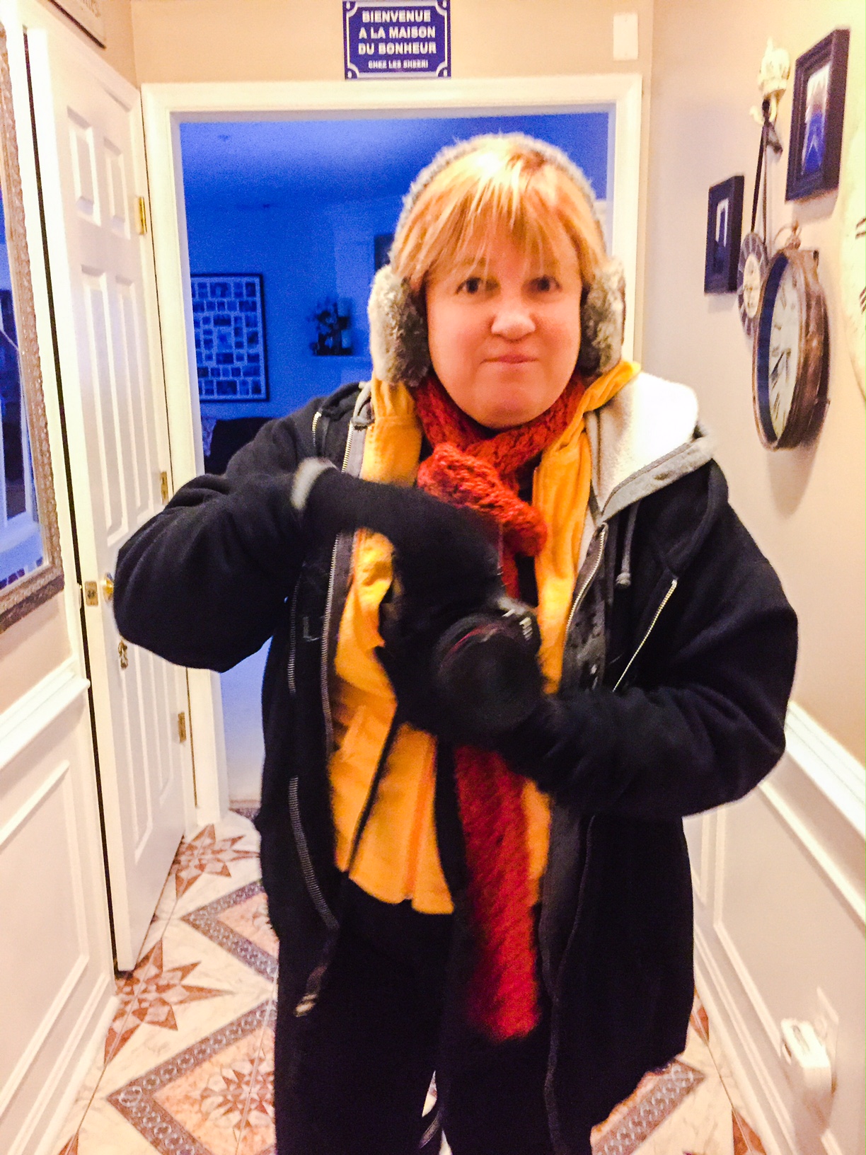 We bundled up (and by we I mean Alicyn. I couldn’t cover my bold red blouse) and headed out to the wooded area behind my building.