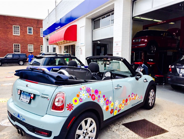 We packed up our gear when the shoot ended and headed out to the parking lot. While we were standing around talking about the shoot I decided to mod my car again and add my new Dragon Slayer license plate frame. Sadly, the screws Passport Mini had used were not the proper screws for the bolt holes and I had a really hard time getting my Mini Fillini Badge Holder back on. Ali and Brandy tried to help, but it wasn’t working. Ali suggested I visit the newest #DCMM vendor David Rockwell at Liberty Automotive on North Henry Street (if you need an automotive shop, run don’t walk, this one is the very best!) She sent him a text to let him know I was on my way.