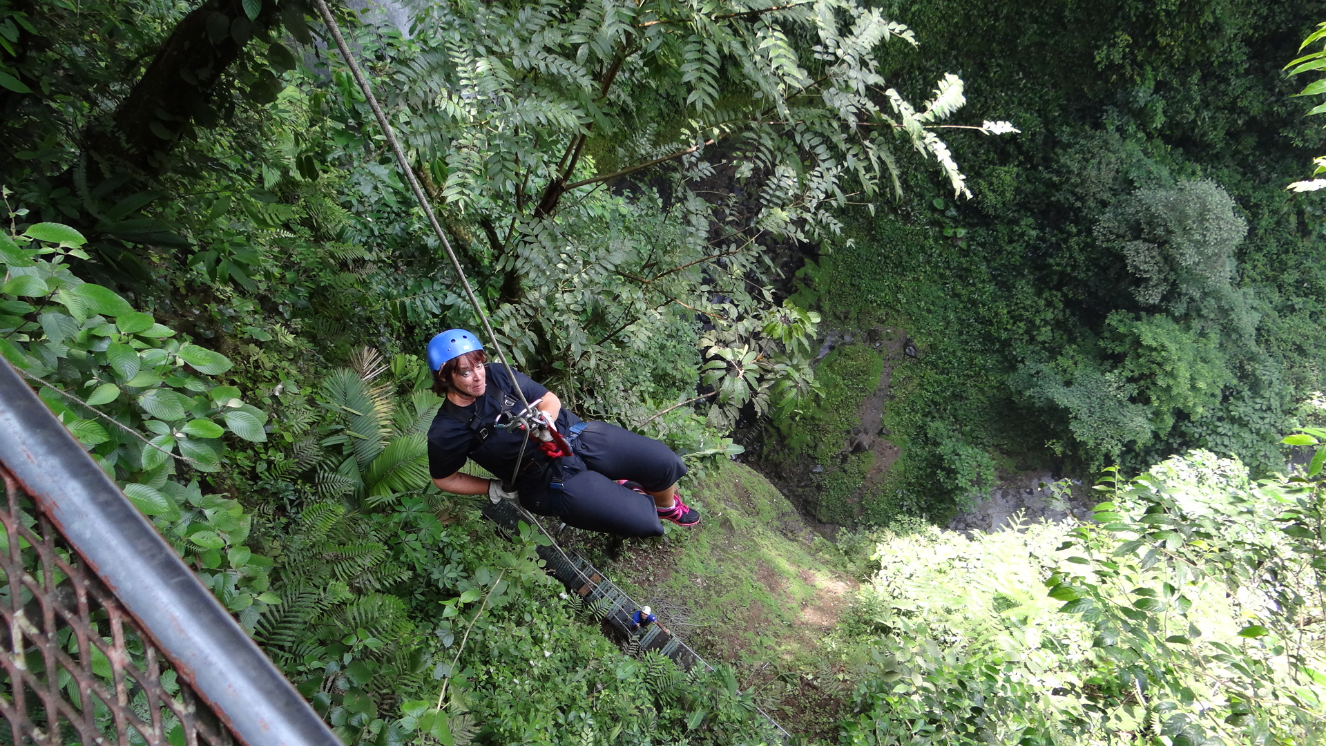 When we got to the sixth platform, our guide told us she had a special treat for us. We were going to go rappelling! I thought I’d been very clear on the fact that I had no interest in rappelling or hanging bridges? The rappelling involved a sheer drop down the side of a mountain and then an intense hand over hand climb back up. Somehow I ended up in a different harness, dangling from a rope 90 meters above the ground.